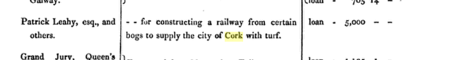 1729 Turnpike Trust. 1822 Cork, Skibbereen and Kinsale Turnpike (Toll Road), Tolled to 1843. 1839 Funding by Commissioner of Public Works, Loan to Trustees of Cork, Skibbereen and Kinsale Turnpike, For road from Castletownbere to Dursey Island, For a Railway From Certain Bogs to Supply Cork with Turf.