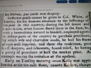 The official attitude is regrettable in view of the destruction of records in the Public Records Office in 1922. Additionally in Cork a fire at the Courthouse in the 1880s destroyed most of the Grand Jury Cork records. A similar dog in the manger attitude is discerned in the Registry of Deeds who hold over 4 million records. They do not allow digital photos ,unlike the National Library and the National Archives.