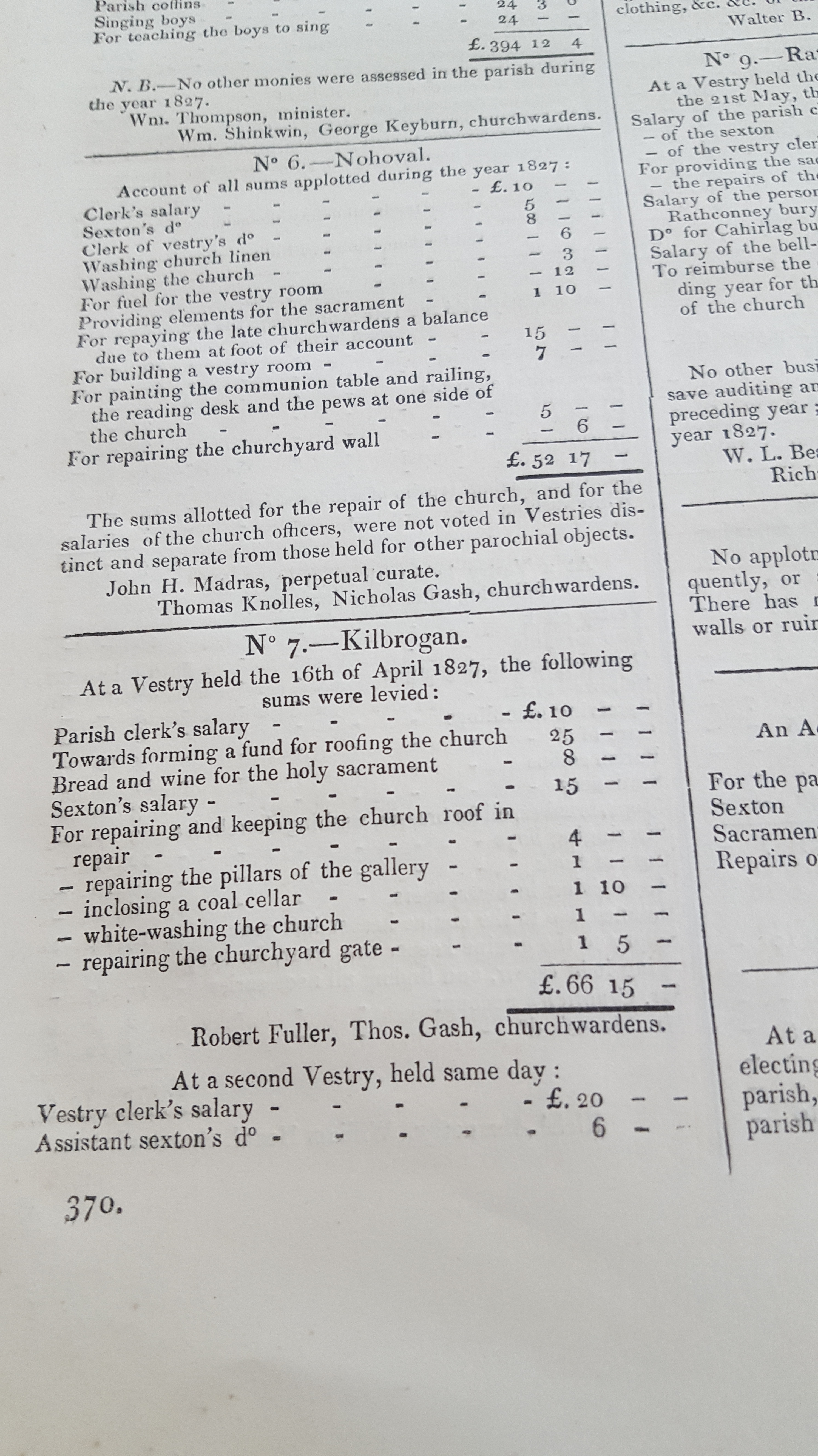 1827, Select Vestry Returns, Church of Ireland, Including Some Named Vestrymen and Churchwardens, Abbeystrewy (Skibbereen), Ballyvourney, Castlehaven, Creagh, Drinagh, Durrus, Fanlobus (Dunmanway), Innishannon, Kilbrogan, Macroom, Morogh, Tullagh (Baltimore)