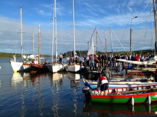 It only happens once a year! During Ballydehob’s Summer Festival traditional sailing boats gather in Roaringwater Bay and when the tide is right they sail up the shallow waters of Ballydehob Bay to the quay.*