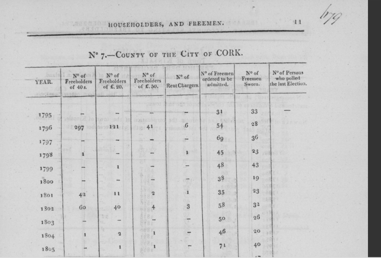1795-1824. Electorate of Co.Cork, Freemen, 40 shillings, £20, £50, Householders, Rentchargers, Bandon Bridge, Kinsale, Manor of Mallow. 07 Tuesday Nov 2017 Original size at 1345 × 910 ≈ Leave a comment