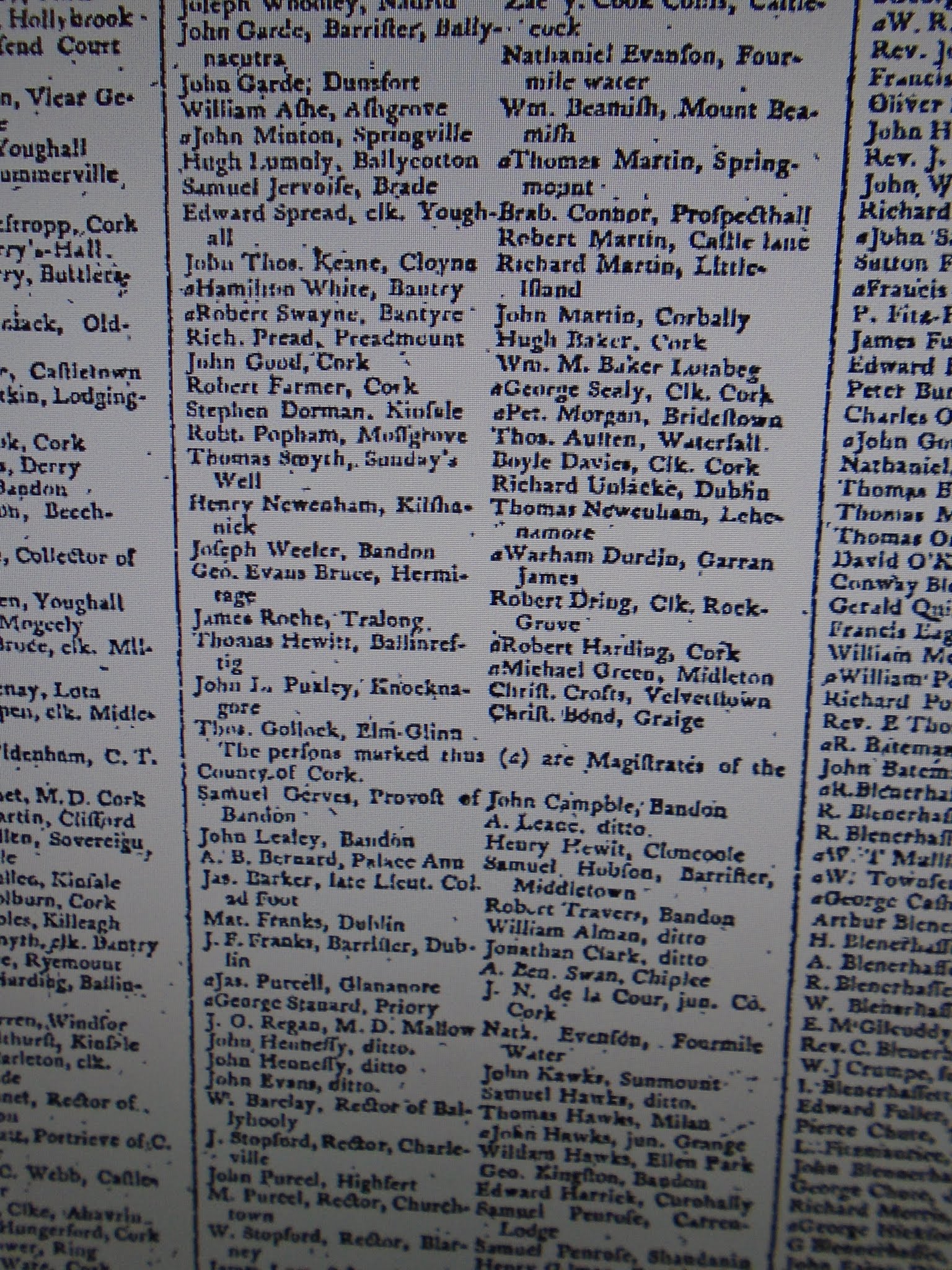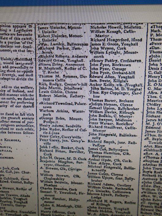 Michael Hungerford Morris, 1866, Friendly Cove/Ballivane, Carrigbui (Durrus), Bantry, Resident, £33, Evanson descendant. 1870 Land Return 1,157 acres. 1871 attending coming of age of Lord Bernard at banquet for Lord Bandon’s western tenants, Durrus Court, also ther, William Morris, Mrs M Morris, Miss Bessy Morris