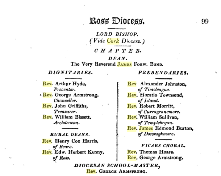 1820, Ecclesiastical Register Containing Names of Clergy, Benefices, Glebes, Glebe Lands of Church of Ireland (then State Church of Ireland) Diocese of Cork and Separately Diocese of Ross. 11 Thursday Jan 2018 Original size at 716 × 569 ≈ Leave a comment