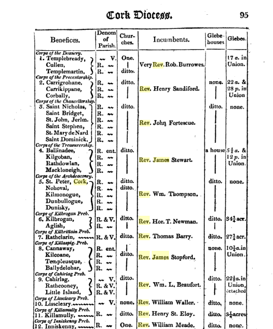 1820, Ecclesiastical Register Containing Names of Clergy, Benefices, Glebes, Glebe Lands of Church of Ireland (then State Church of Ireland) Diocese of Cork and Separately Diocese of Ross. 11 Thursday Jan 2018 Original size at 538 × 648 ≈ Leave a comment