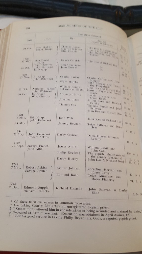 1712-1772, Co. Cork, Executions (Penal Impositions on Papists ) Obtained. Parties Named, some addresses some Bantry, Berehaven, Glengariff, Castlehaven. 26 Monday Mar 2018 Original size at 2976 × 5312 ≈ Leave a comment