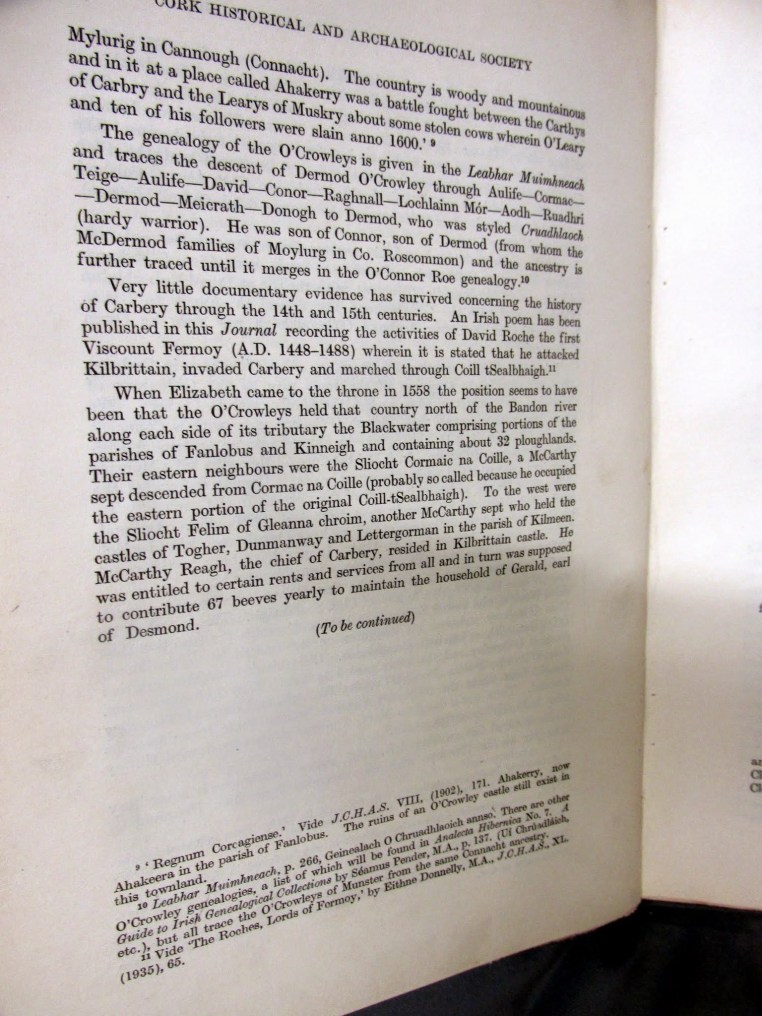 Some Cork and Kerry families such as Galwey, Roches, Atkins, O’Connells, McCarthys, St. Ledgers, Orpen, Skiddy, in John Burkes 1833 Commoners of Great Britain and Ireland: