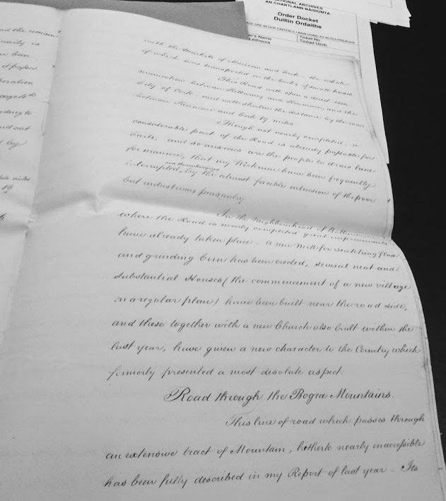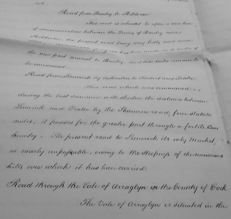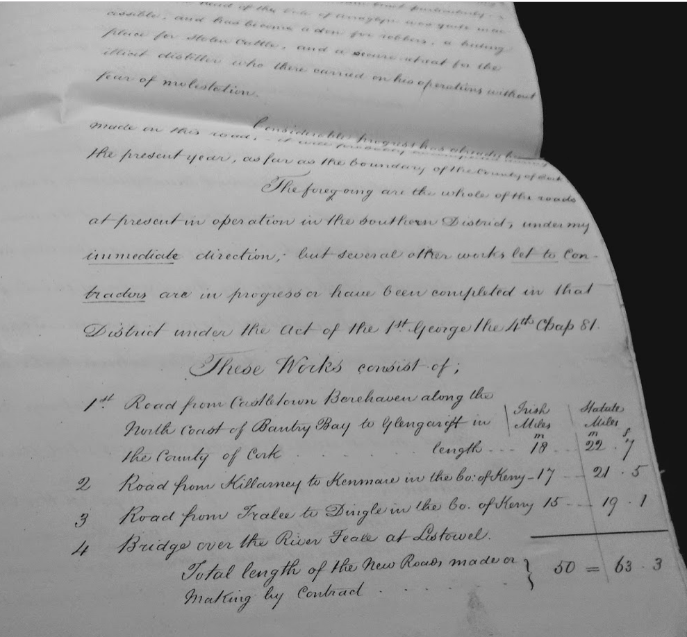 His colleague Alexander Nimmo a Scots Engineer reported on the opening of the road over the Boggeragh Mountain. The the whole area of North West Cork and East Kerry was accessible to the Cork market with general prosperity following. Nimmo was scathing on Captain O’Sullivan, a Landlord and road contractor on the road works around Glengarriff. He paid his workers who were his tenants in vouchers redeemable against rent.