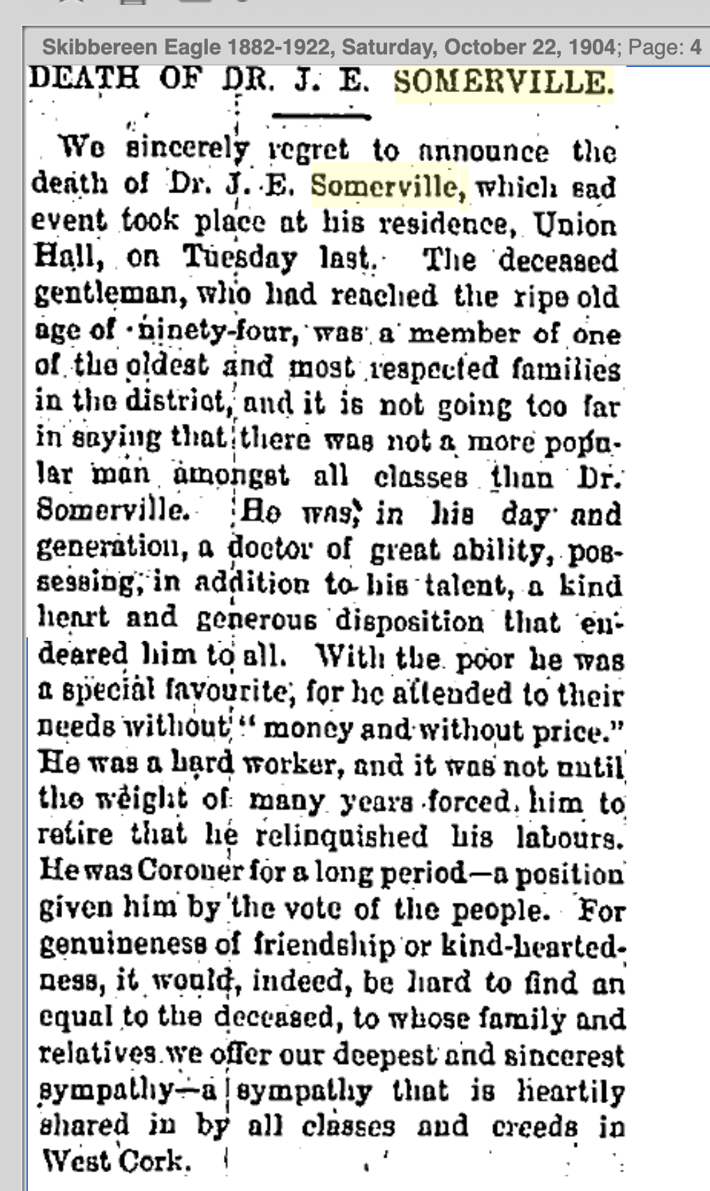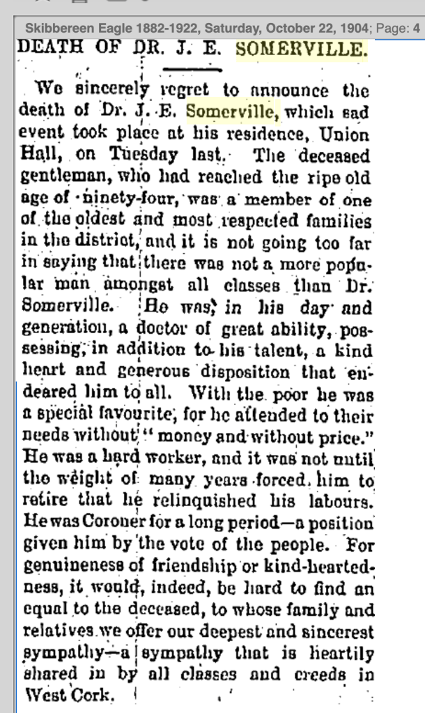 Another brother (all Landlords and Magistates) was Dr. Daniel he lived between nearby Ahakista Cottage near Graham Norton’s house and Norton Cottage, Skibbereen later home of Jasper Woufe, Solicitor, Crown Prosecutor for West Cork and Independent TD West Cork.