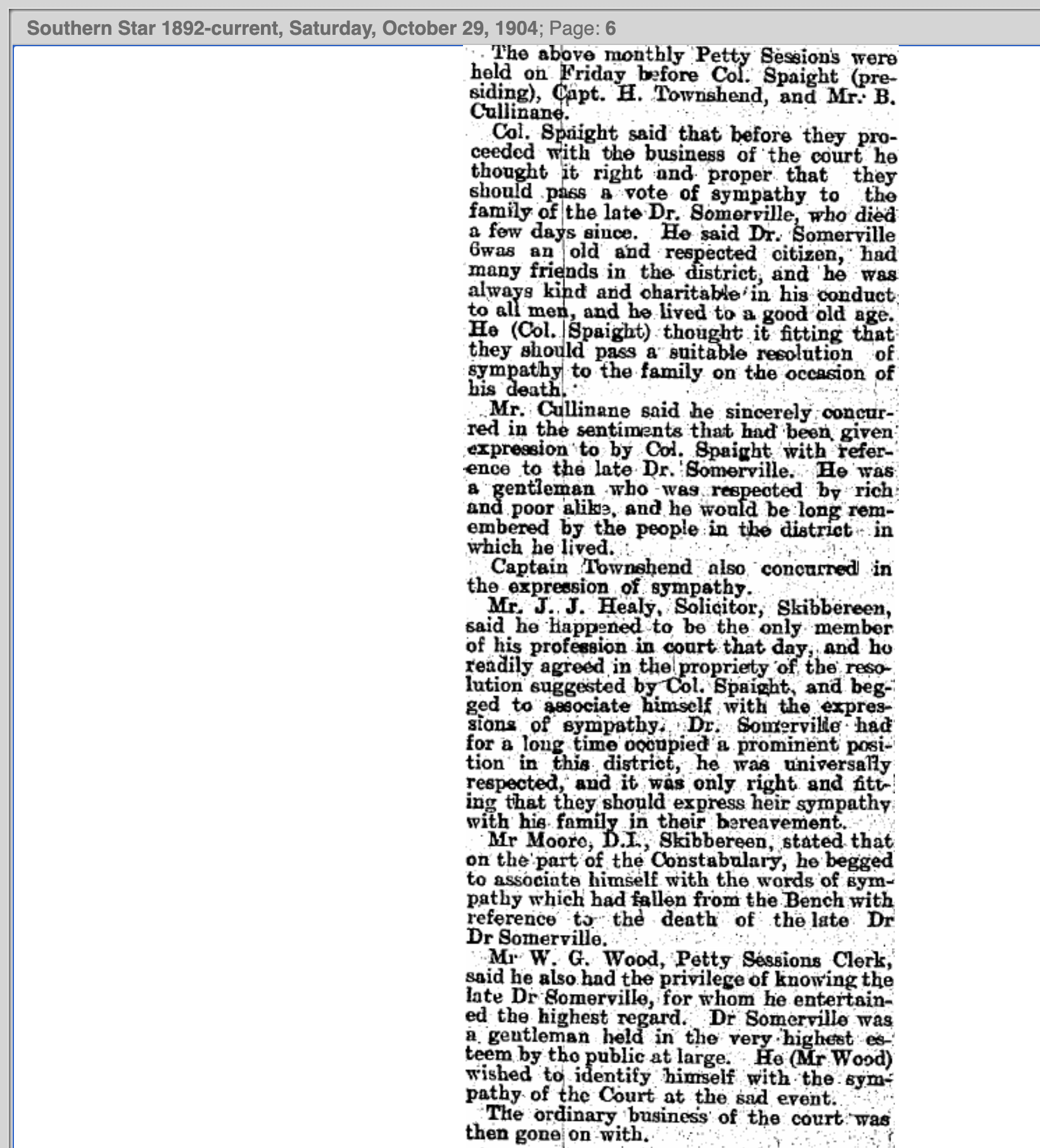 The recent illness of my eldest son in London has prevented me, from replying to your recent communication, and to thank you for sending the book containing the account of the funeral of my old friend Jerry na Duna, I am