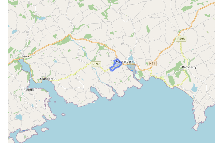 A few comments. The presence of the schooner would suggest that the pier at Sea Lodge about 3km towards Durrus and the stores were build after this time probably by the Bandon Estate.