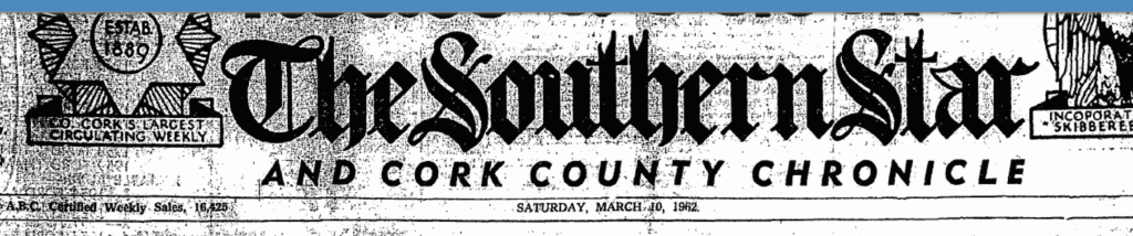 Also included as it is o the sae,page is a report of horse sale in Skibbereen. One of the purchasers is the Bantry Tourism Development Syndicate managed by George Vickery. The Vickery family were pioneers in tourism development in Thomas Vickery establishing Vickery’s Hotel and a coaching establishment with the Prince of Wales Route from Bantry to Killarney via Glengariff.