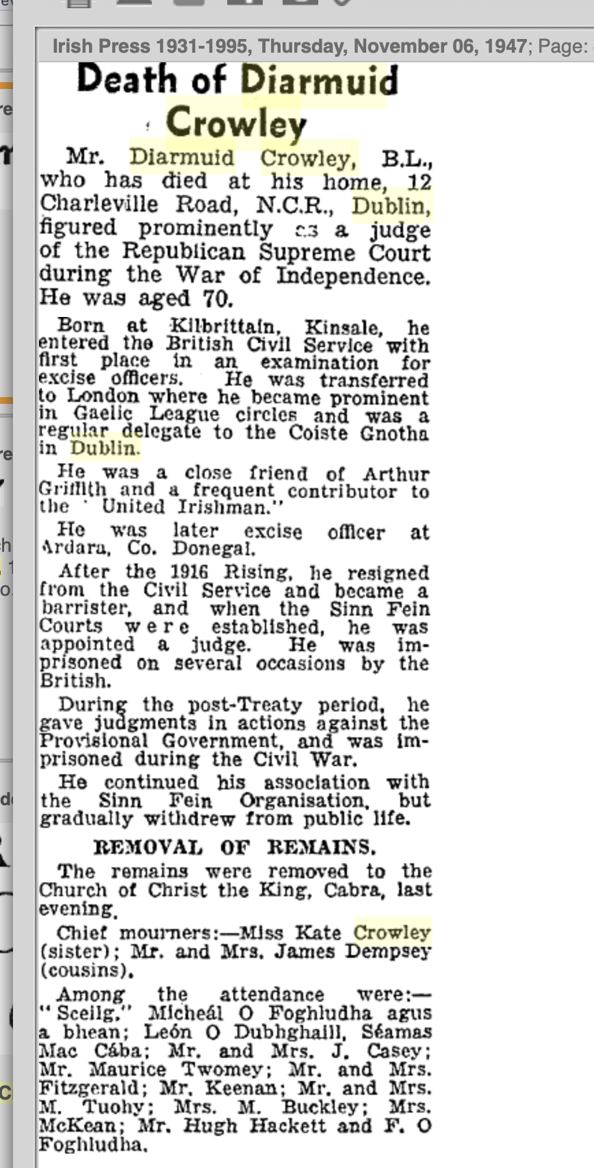 Copies of Welply’s work can be found in various record offices including PRONI and his genealogical notes and papers were finally bequeathed to the Representative Church Body Library in Dublin after his death in 1960. The will abstracts from these papers are indexed in Volume 6 of the journal the Irish genealogist and abstracts of Irish Chancery Bills and other genealogical notes or “gleanings” at the RCBL are indexed in volume 7 of the Irish Genealogist.