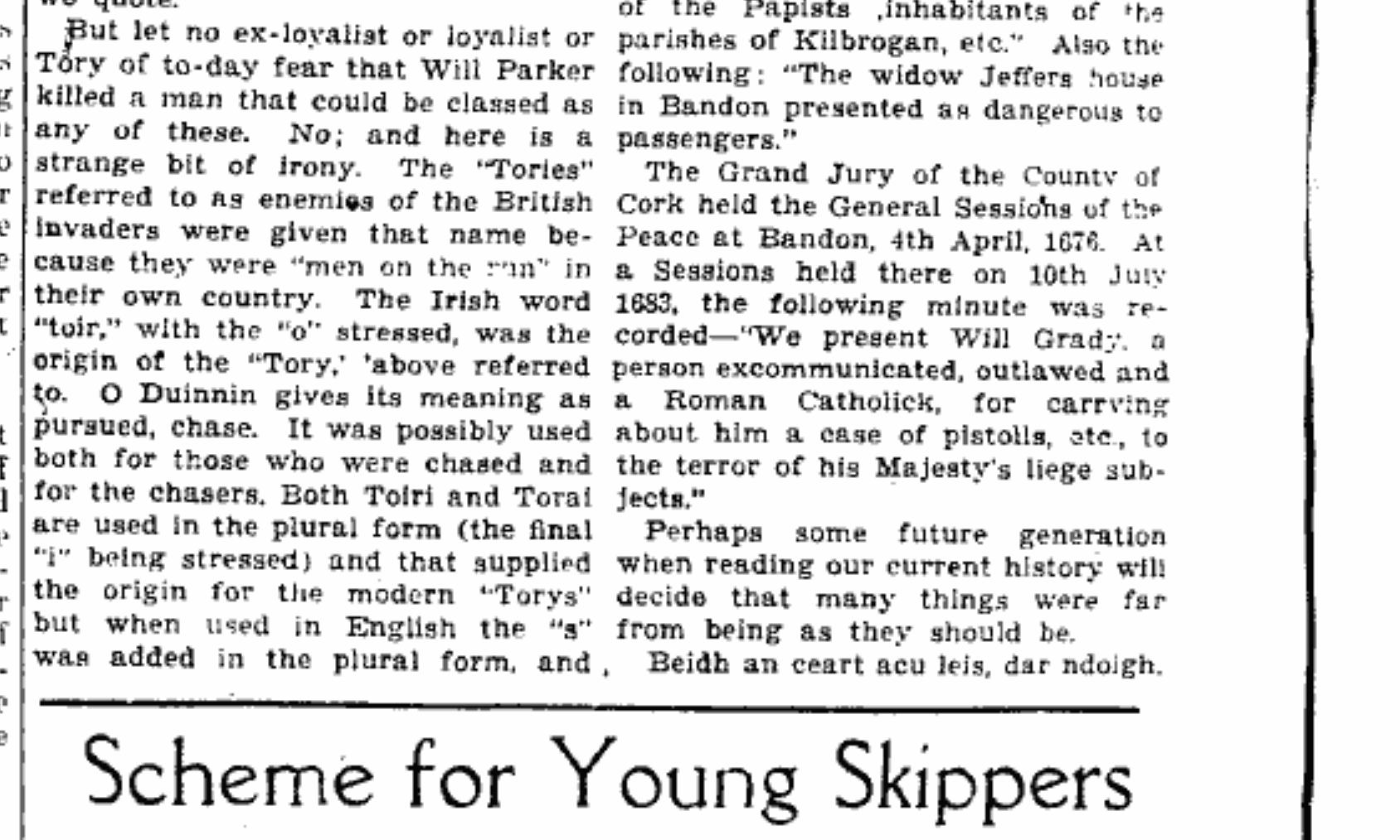 Bantry born Tim healy, MP, Barrister and later Governor General of the Irish Free State is a pivotal figure in the split in the Irish Parliamentary Party after the fall of Parnell, In the works of James Joyce you would imagine he was the main culprit Joyce probably recycling tales told by his Cork born father John Stanislaus Joyce, a man heavily involved in poltics.