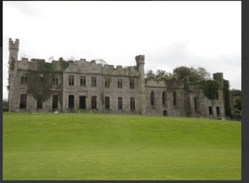 Despite its ruinous condition, this imposing castellated country house has retained its historic form and a great deal of its fabric. Built in the Classical style in the final years of the eighteenth century for Francis Bernard, the first earl of Bandon, it was remodelled and extended in the nineteenth century in the Gothic Revival style. The main block displays classically inspired proportions, breakfronts and bowed rear bay, while the later battlemented stone parapet walls, turrets, bartizans, balistrariae, arrow-loops and panel-tracery mask its regular classical character. The attached ruined medieval tower house of the O’Mahoney clan which was acquired by the family in early seventeenth century adds archaeological interest. Burnt as a symbol of British occupation in 1921, the house and its related buildings remain a spectacular addition to the architectural heritage and are a reminder of the wealth and prosperity of the demesne in the past.