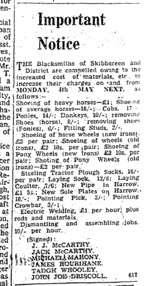 I spent many happy hours with the blacksmiths in the lane near my home in Skibbereen.