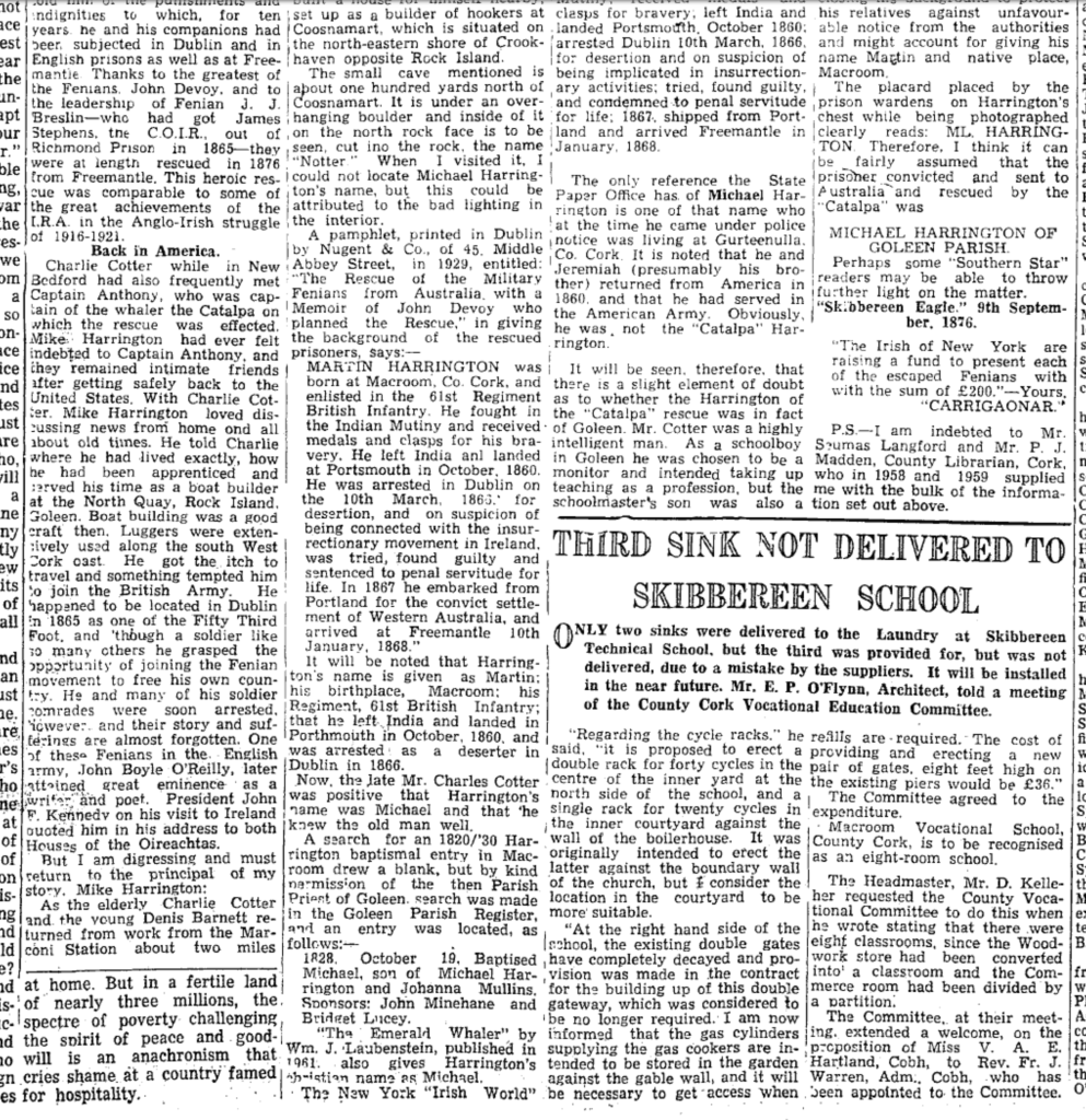 Skibbereen Eagle 1913. Excerpts from Jeremiah O’Donovan Rossa. Recollections. Faction Fighting in Drimoleague, doing Business as Gaelige in Skibbereen, Fenian Drilling, Funeral of Dr. Jerrie Crowley,