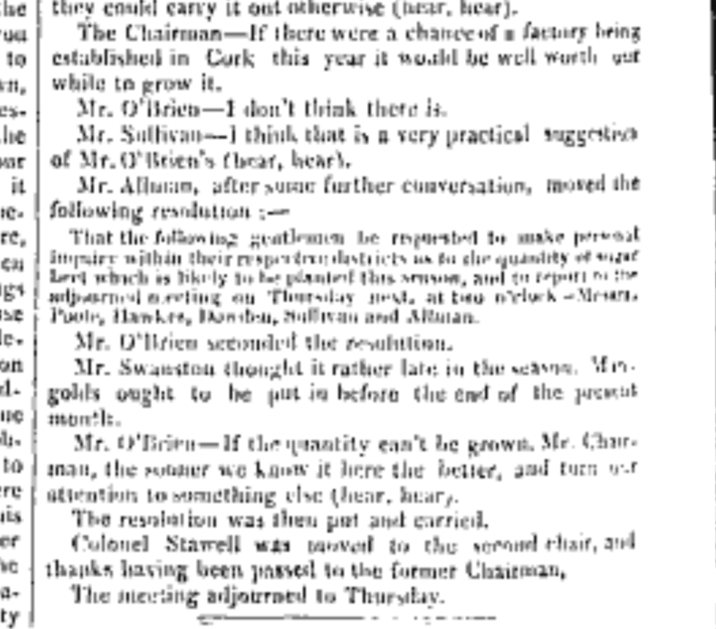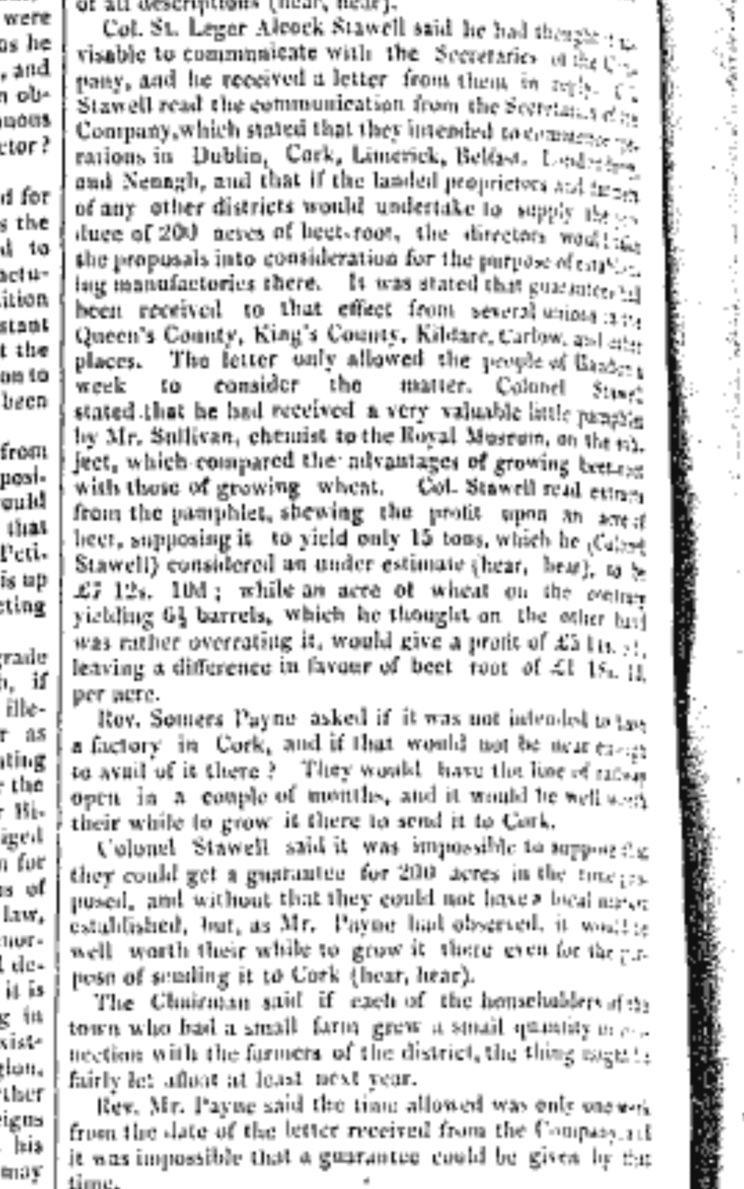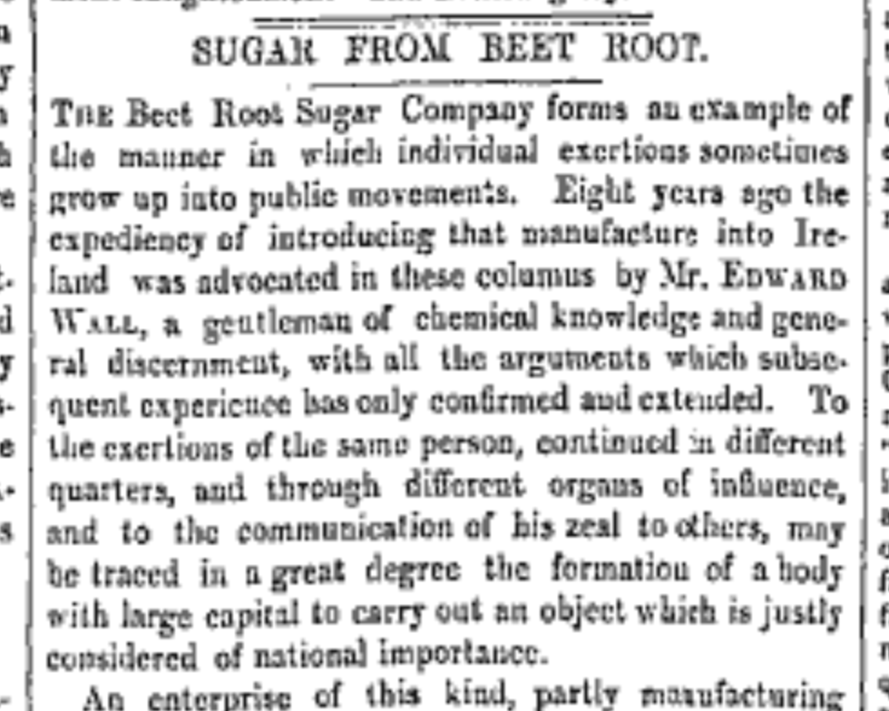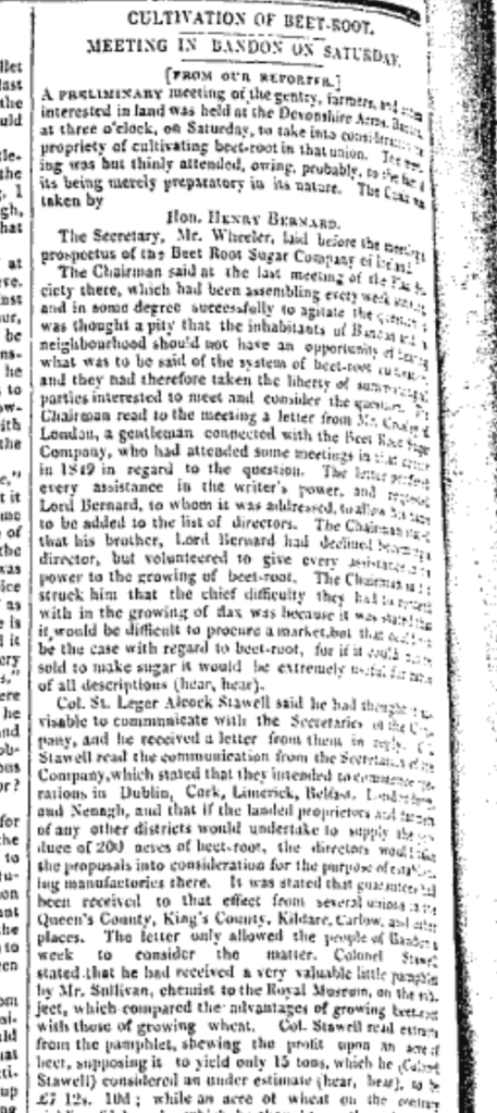 1851 Suggested Sugar Beet Factory for Bandon. Arrival of New Railway Imminent.