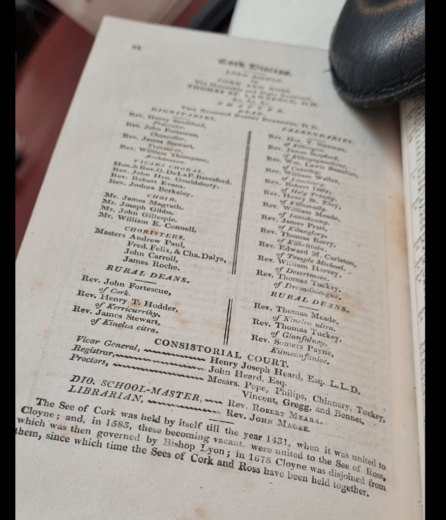 Rev. Alleyn Evanson TCD AB, (1790-1853) Pre 1828, Four-Mile-Water Court, Durrus, sitting Bantry, 1835. 1819 Member of the Association Incorporated for Discontinuancy Vice and Promoting the Knowledge and Practise of The Christian Religion Son of Nathaniel (Generosus) and Mary Townsend Baldwin (1764-1827). Ed Dr. Sullivan, Bandon, TCD aged 16. Middle Man, Land Agent. Voted for Hutchinson 1826 election. Signed petition 1827 against Catholic Emancipation. While a curate in Schull 1829 he stated that there were 1,200 Protestants in the Parish. Grand Jury Presentment Sessions Schull, major Grand Jury road contractor with cousin Charles Evanson. 1835 subscriber to Father Quin’s church building fund, Durrus. Signed public declaration to Alexander O’Driscoll on his removal as Magistrate 1835 with Lord Bantry, Simon White, John Puxley, Arthur Hutchins, Thomas Baldwin, Samuel Townsend Junior and Senior, Hugh Lawton, Thomas Somerville, Richard Townsend Senior, Rev. Alleyn Evanson, Timothy O’Donovan, Richard Townsend, Lyttleton Lyster. Freeman Bandon, 1841 election voted Longfield/Leader. Apart from Bandon estate he was renting Church lands in West Carbery including Crookhaven and Kilcrohane from Robert Delacour who was made bankrupt in 1839. Attending 1840 Great Meeting Bantry re Poor Law. Probate 1853, £5 (may be nominal for conveyancing). Presentment sessions Ballydehob 1845. Friendly with Father Ryan, Drimoleague features in an account 1836 of journey from Drimoleague written by John Windle in Dublin Penny Journal. After his death his wife Harriet Alleyn, 2nd daughter of Henry Hardy Esq., moved to Mespil Estate, Dublin, his brothers Dr. Hungerford and Dr. Henry Baldwin Evanson (1795-1867) of Cork guardians of young children. Subscriber Lewis Topographical Dictionary of Ireland 1837. In 1835 his rent charge over lands at Brahalish Durrus was granted to Henry Baldwin Evanson, his brother, entitling him to vote. Assisting 1848 Henry J. Fawcett, Practical Instructor on Husbandry of visit to Bantry Either his sister or cousin Martha Evanson married Rev. John Madras, their grand daughter m 1867 Ann Marie (Millie) Curtis, Magourney she descended Promoting the Knowledge and Practise of The Christian Religion Son of Nathaniel (Generosus) and Mary Townsend Baldwin (1764-1827). Ed Dr. Sullivan, Bandon, TCD aged 16. Middle Man, Land Agent. Voted for Hutchinson 1826 election. Signed petition 1827 against Catholic Emancipation. While a curate in Schull 1829 he stated that there were 1,200 Protestants in the Parish. Grand Jury Presentment Sessions Schull, major Grand Jury road contractor with cousin Charles Evanson. 1835 subscriber to Father Quin’s church building fund, Durrus. Signed public declaration to Alexander O’Driscoll on his removal as Magistrate 1835 with Lord Bantry, Simon White, John Puxley, Arthur Hutchins, Thomas Baldwin, Samuel Townsend Junior and Senior, Hugh Lawton, Thomas Somerville, Richard Townsend Senior, Rev. Alleyn Evanson, Timothy O’Donovan, Richard Townsend, Lyttleton Lyster. Freeman Bandon, 1841 election voted Longfield/Leader. Apart from Bandon estate he was renting Church lands in West Carbery including Crookhaven and Kilcrohane from Robert Delacour who was made bankrupt in 1839. Attending 1840 Great Meeting Bantry re Poor Law. Probate 1853, £5 (may be nominal for conveyancing). Presentment sessions Ballydehob 1845. Friendly with Father Ryan, Drimoleague features in an account 1836 of journey from Drimoleague written by John Windle in Dublin Penny Journal. After his death his wife Harriet Alleyn, 2nd daughter of Henry Hardy Esq., moved to Mespil Estate, Dublin, his brothers Dr. Hungerford and Dr. Henry Baldwin Evanson (1795-1867) of Cork guardians of young children. Subscriber Lewis Topographical Dictionary of Ireland 1837. In 1835 his rent charge over lands at Brahalish Durrus was granted to Henry Baldwin Evanson, his brother, entitling him to vote. Assisting 1848 Henry J. Fawcett, Practical Instructor on Husbandry of visit to Bantry Either his sister or cousin Martha Evanson married Rev. John Madras, their grand daughter m 1867 Ann Marie (Millie) Curtis, Magourney she descended phans. His eldest son in 1811 Rev. William Alleyn married the sister of the Provost of TCD, Lyndon MacDonnell.