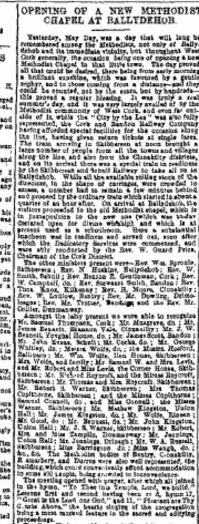 All the evidence was that the people of the general Skibbereen District regardless of their religion or politics pulled along pretty well as evidenced by shared interest attendance at funerals etc. This was in contrast to the Bandon Valley where sectarianism and party feeling remained high up to the 1830s.