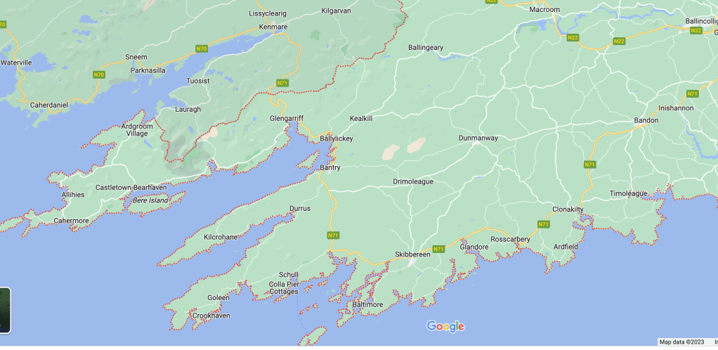 This seat of O’Donovan’s Cove stands in the Parish of Kilcrohane in the Barony of West Carbery and County of Cork. It is my property by inheritance, my younger brother, Doctor O’Donovan who has an independent estate resides at Norton Cottage, Skibbereen and we are both in the Commission of The Peace for the County.