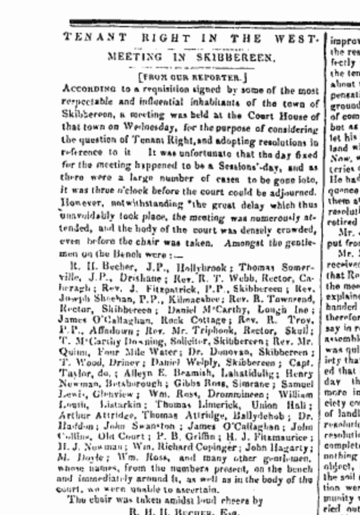 Collections for Evicted Tenants, Castlehaven/Myross, Myross, Ardfield, Rathbarry. 1892 Collection Ballyroe. 1893, Clonakilty Evicted Tenants Fund. Like a Mini Census. Fiery address of James Gilhooley, M.P., in Goleen on Evictions. Gilhooley ‘The Irish People Have Never Acknowledged this Right of Any Nation In the World To Govern Them.