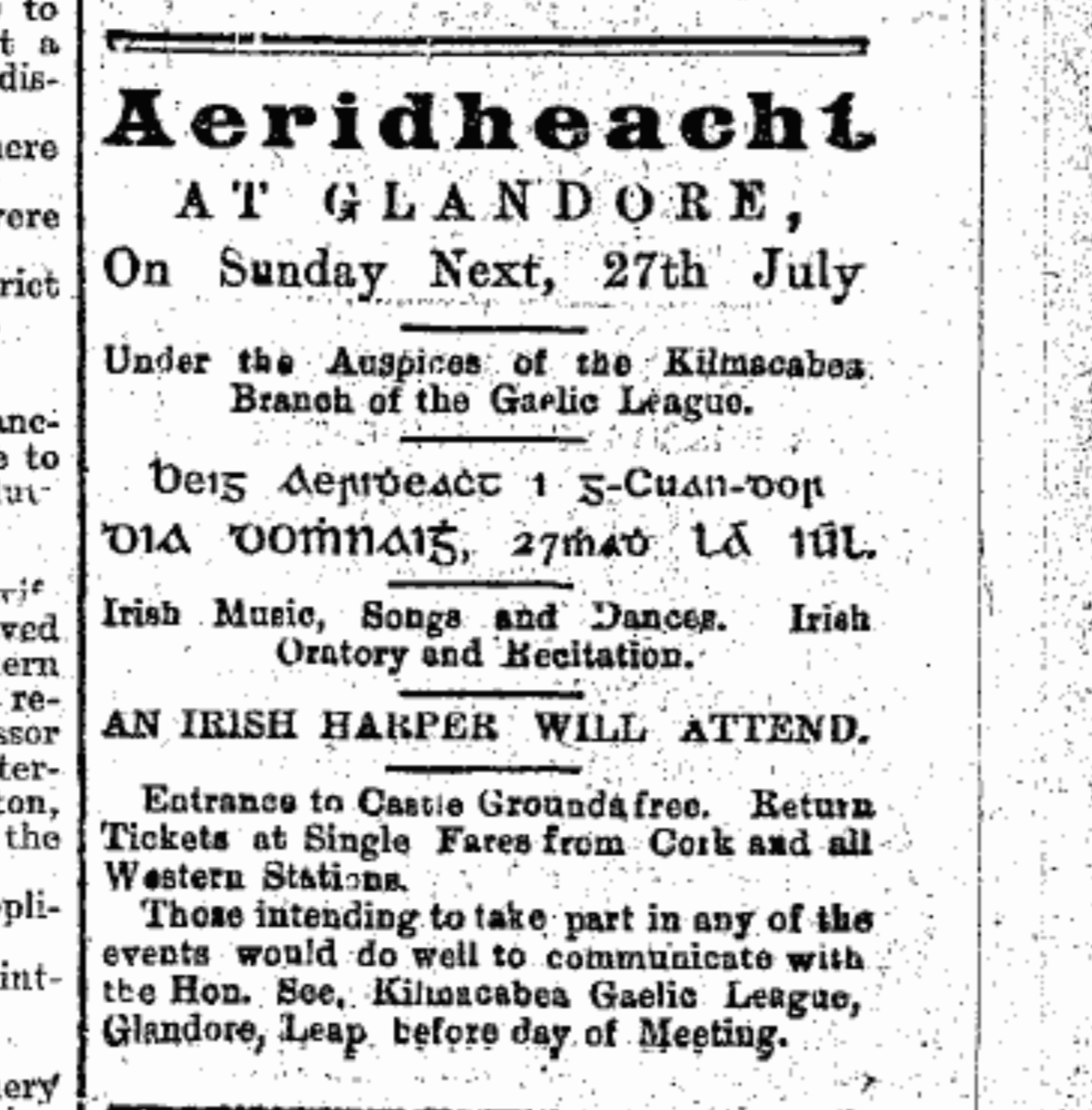 In 1902 it is likely that a fair proportion of the older people west and north of Dunmanway were either Irish speakers or bi lingual