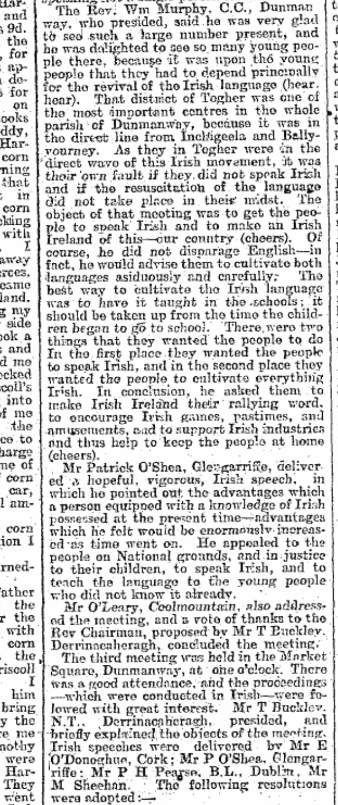1902 Irish Day Dunmanway addressed by Pádraig Pearse
