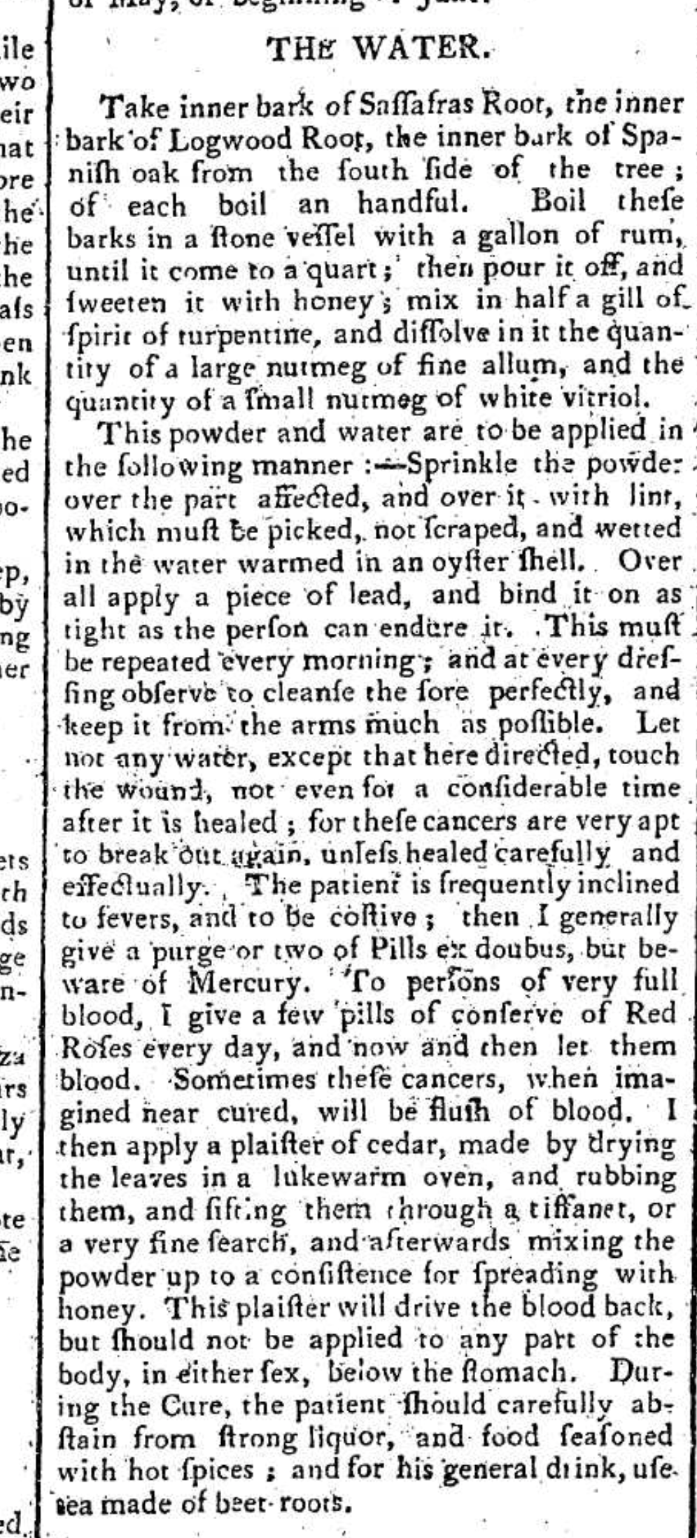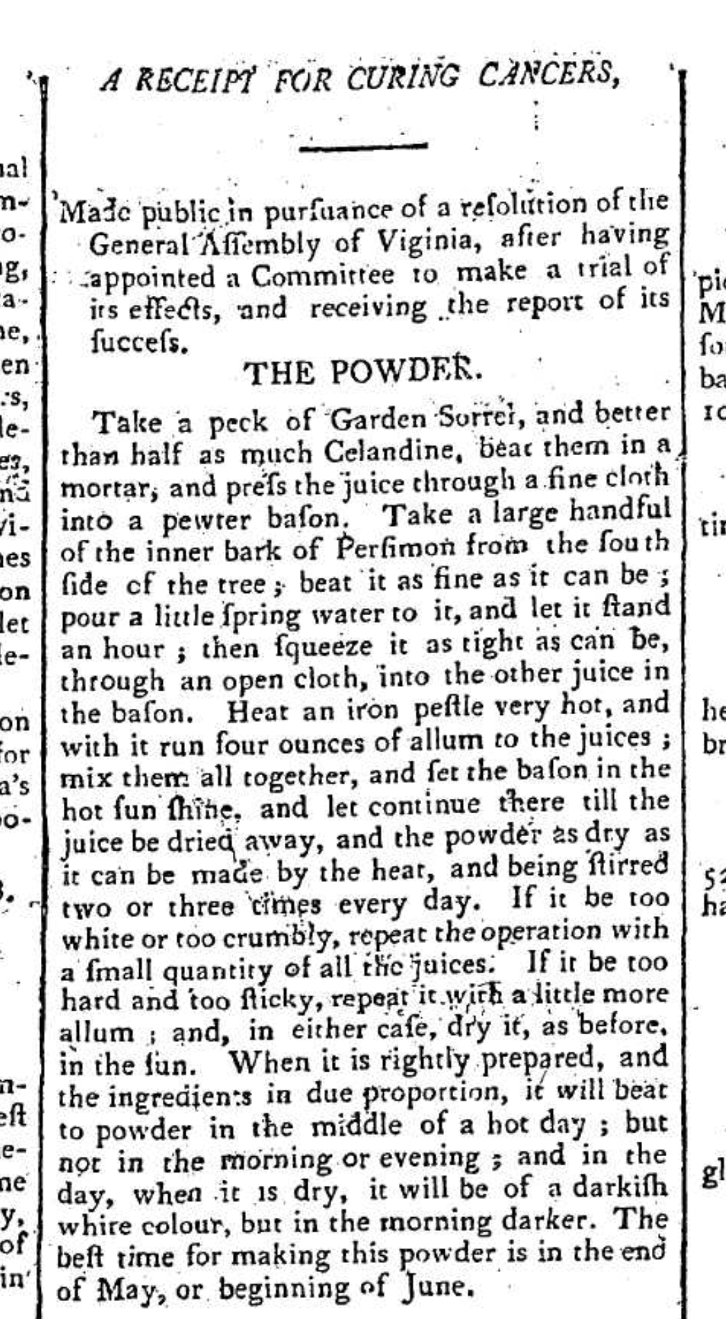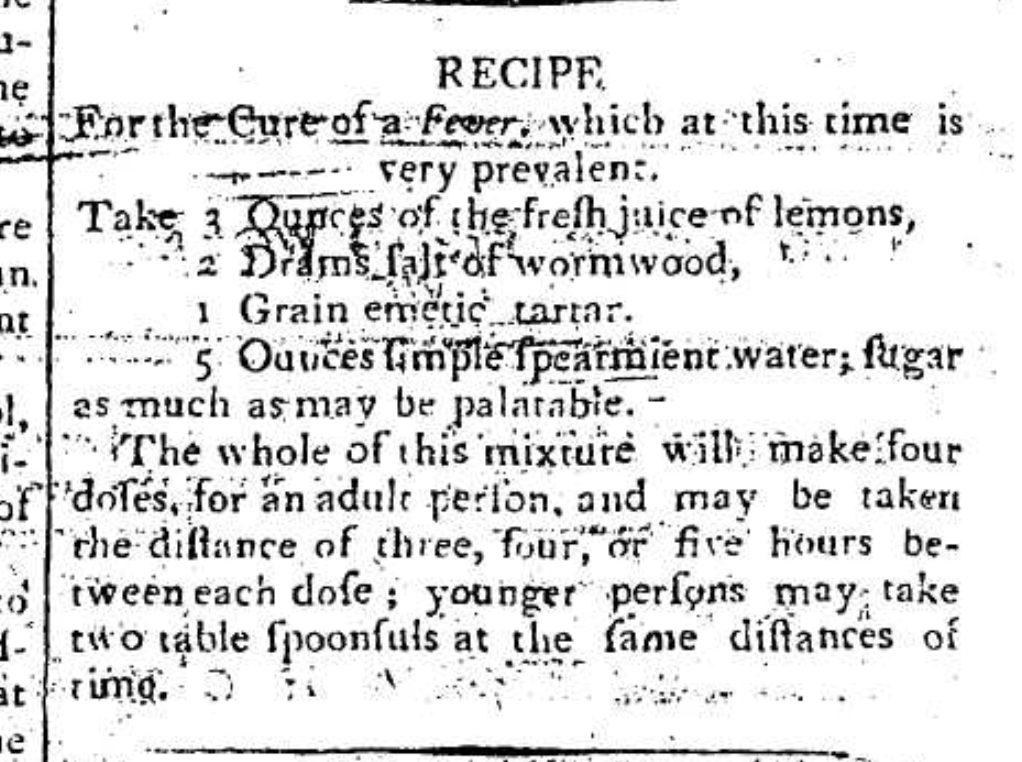 1792 Recipe For The Cure Of A Fever. A Recipe For Curing Cancer