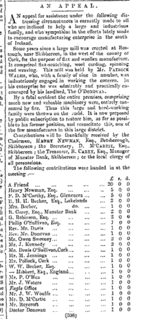 Probably the donor of £500 in his will toward the building of the new church in Durrus