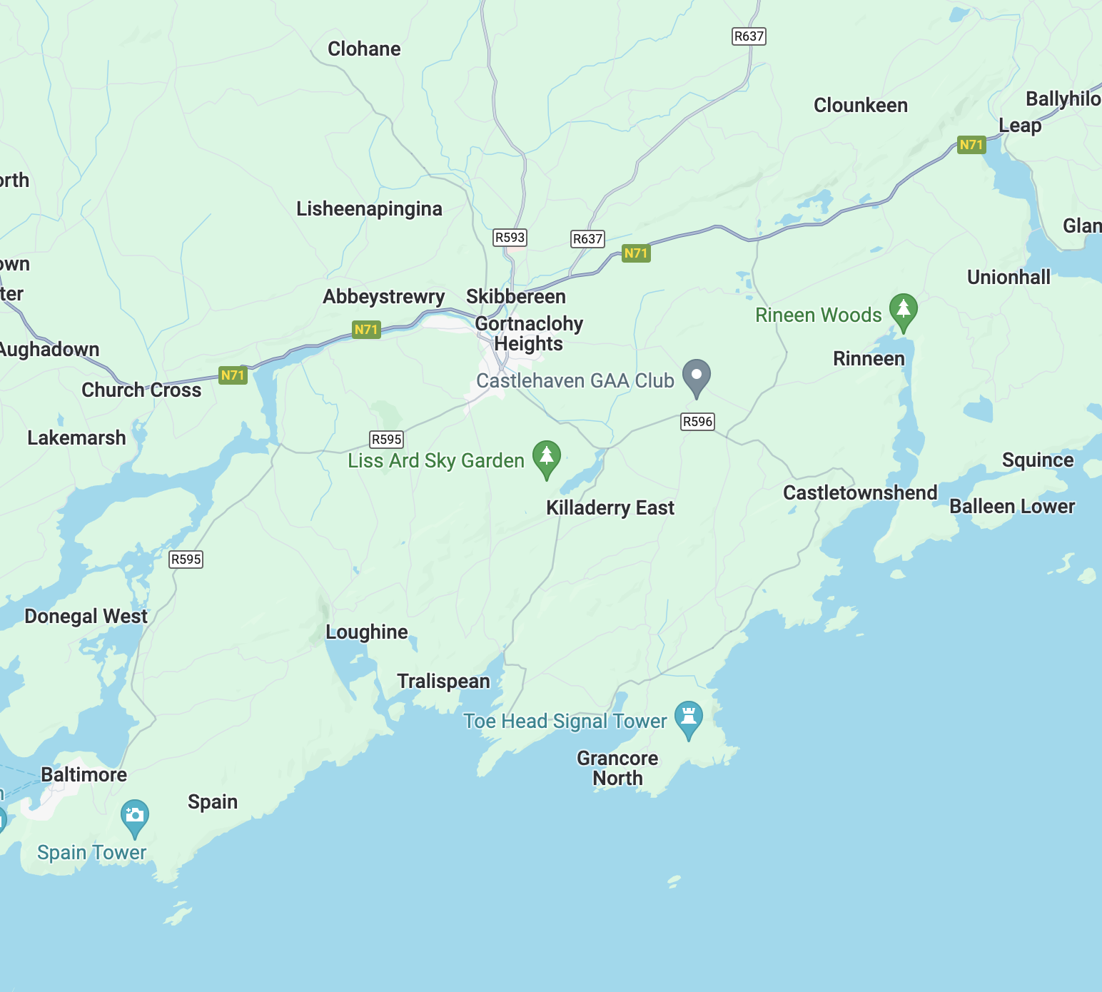 consisted of 250 acres with 80 good acres yielding 31/2 tons of hay to the acre. He acquired Durrus Court and various lands from the Earl of Bandon in 1894 by way of lease for 99 years from 29th Sept 1894 at a rent of £25 he died on the 2nd July 1897 and let his interest to his successor Parish Priest of Durrus Daniel Foley he in turn assigned his interest to his successor Timothy O’Leary. On his death the Bantry Poor Law Guardians adjourned for a week.