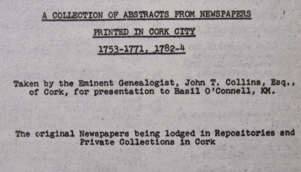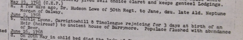 Memoirs of Ignatious O’Brien, Lord Shandon, Lord Chancellor of Ireland re food in Cork
