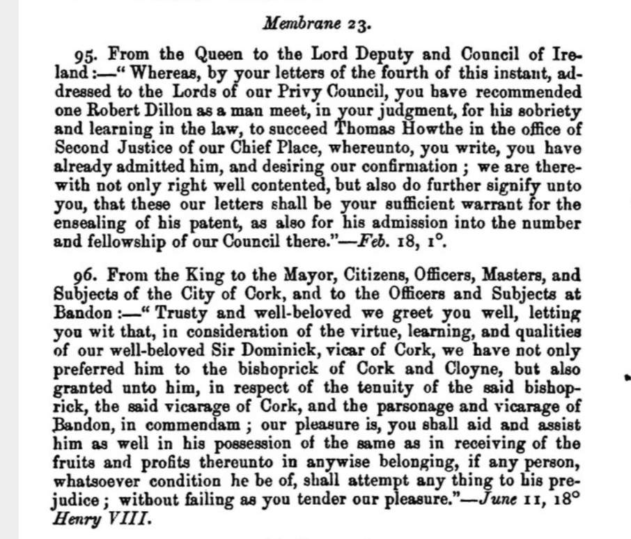 * Parliamentary Records Index, vol. ix, p. 1,952 (National Archives of Ireland RC 14/9); Brady, Cork, Cloyne and Ross, i, p. 95.