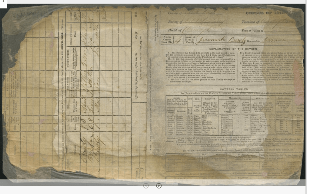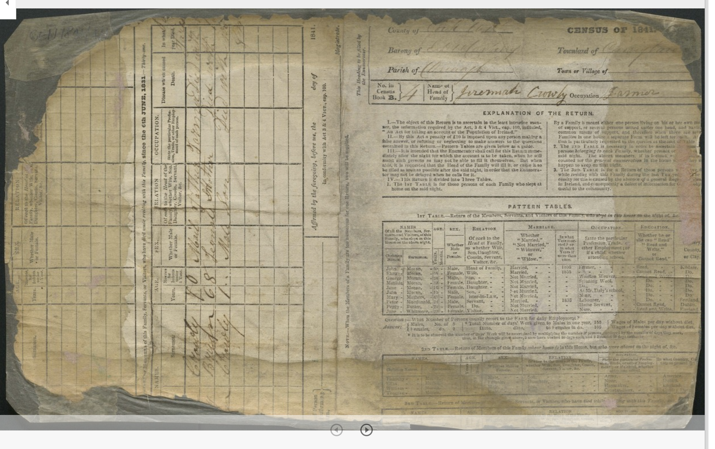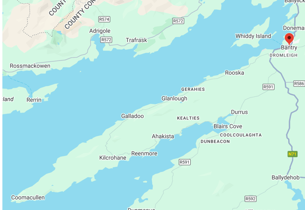 The original return provided a list of householders’ names, as was required by the resolution of the House of Lords (see comment below about list of householders in Bantry), but only household and population numbers have survived.* The parishes in the union were Kilcrohane, Durrus and Kilmocomoge.