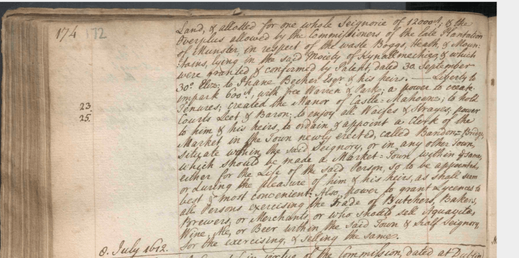 John Townsend Beecher, 1760, Anne Grove, 1755 Faulkner’s Dublin Journal 22 Feb 1755 “17 Feb Married last Thursday John Townsend Becher Esq To Miss Donovan, d Rev. Morgan O’Donovan, Magistrate, Ballinacalla, with £5000. Died 1761, at her lodgings near South Gate, Mrs Beecher, relict of John Townsend Beecher of Ann Grove”. Possibly, 1771 Limerick Chronicle 10 Oct 1771, “Thursday last at Cork Colonel John Becher of Hollybrook to Miss Bab. Townsend of Skibbereen.”Michael Beecher, 1777, Creagh, Skibbereen, member Atlantic Society literary society. Subscriber of 1766 ‘The History of the Irish Rebellion’, Cork, 1766. 1778 Dublin Hibernian Journal Aug 24 1778, “Died-Near Bandon Michael Beecher of Creagh Esq.” 1789 Cork Evening Post 12 Jan 1789, ‘Last Sat George Pigott Rogers Esq. to Mary Twogood Becher, dau of the Late Michael Becher of Creagh, Esq’.