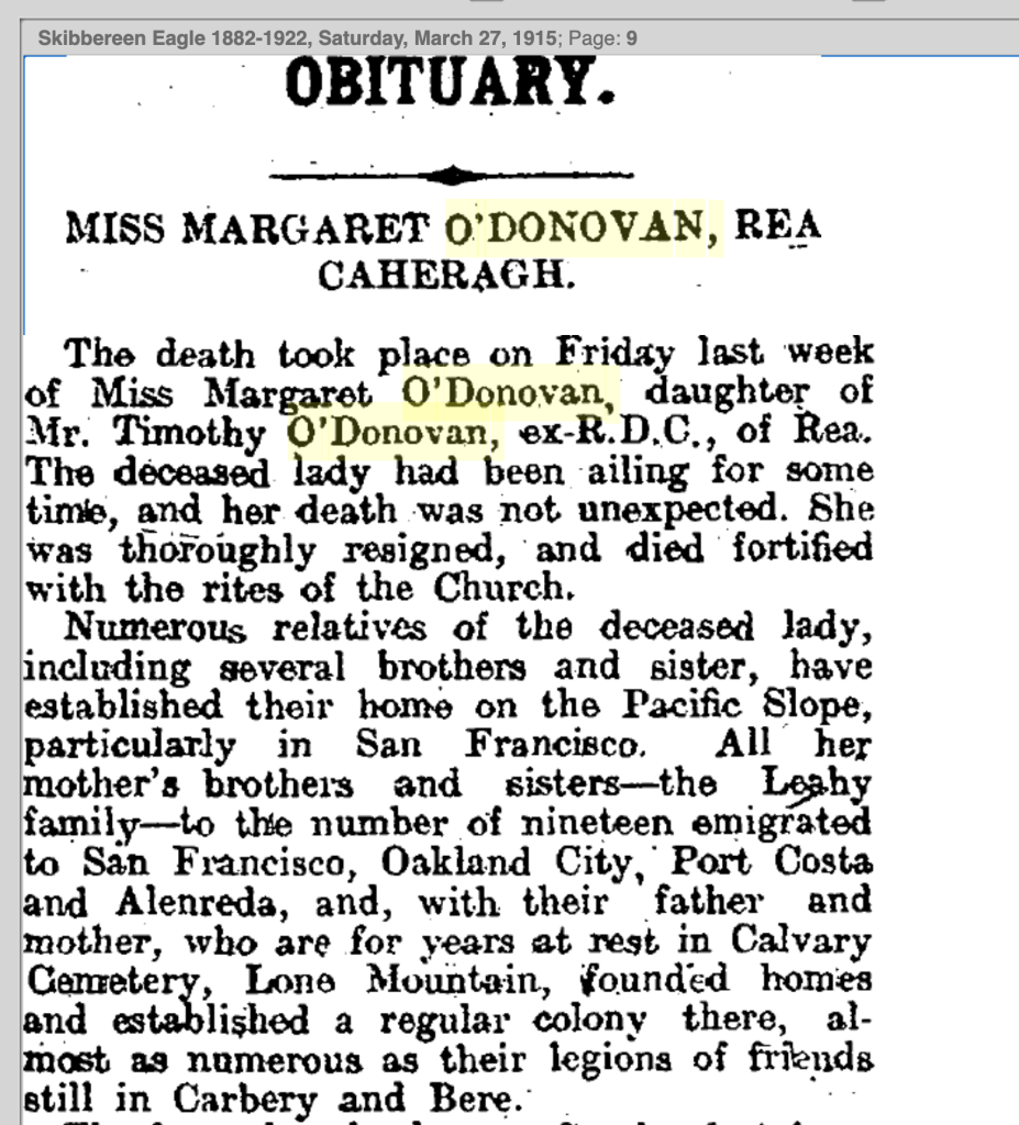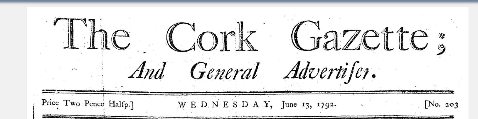 John Townsend Beecher, 1760, Anne Grove, 1755 Faulkner’s Dublin Journal 22 Feb 1755 “17 Feb Married last Thursday John Townsend Becher Esq To Miss Donovan, d Rev. Morgan O’Donovan, Magistrate, Ballinacalla, with £5000. Died 1761, at her lodgings near South Gate, Mrs Beecher, relict of John Townsend Beecher of Ann Grove”. Possibly, 1771 Limerick Chronicle 10 Oct 1771, “Thursday last at Cork Colonel John Becher of Hollybrook to Miss Bab. Townsend of Skibbereen.”Michael Beecher, 1777, Creagh, Skibbereen, member Atlantic Society literary society. Subscriber of 1766 ‘The History of the Irish Rebellion’, Cork, 1766. 1778 Dublin Hibernian Journal Aug 24 1778, “Died-Near Bandon Michael Beecher of Creagh Esq.” 1789 Cork Evening Post 12 Jan 1789, ‘Last Sat George Pigott Rogers Esq. to Mary Twogood Becher, dau of the Late Michael Becher of Creagh, Esq’.
