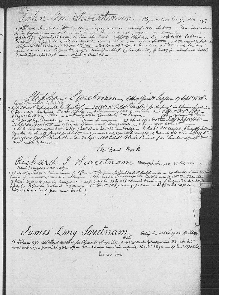 .. 1863 Dr. Richard James Sweetnam Qualified Royal College of Surgeons 1863 Air Hill. British Navy 1870? .