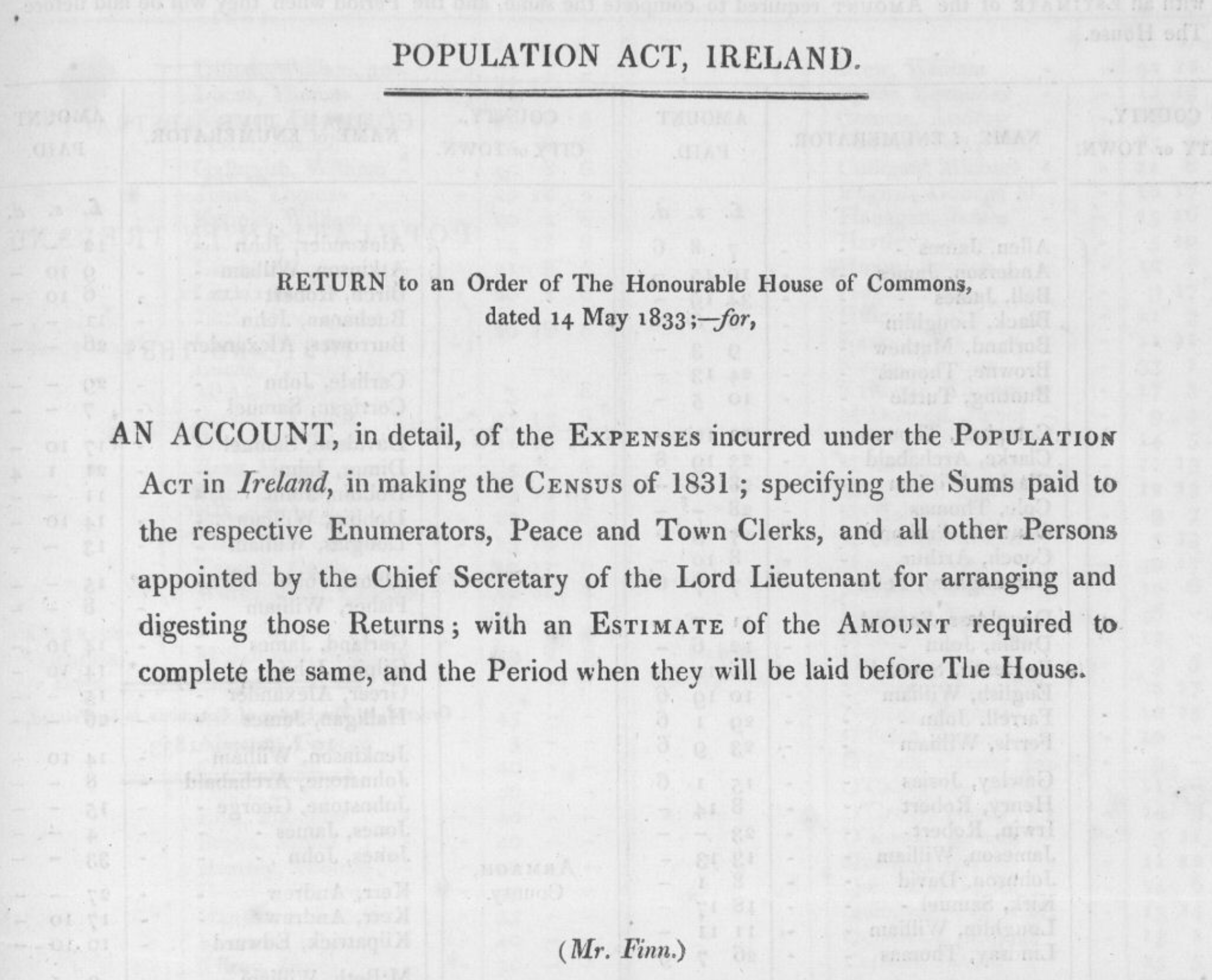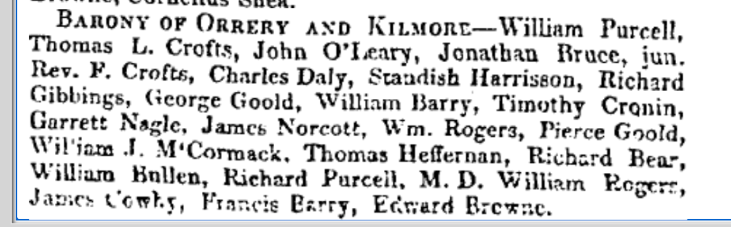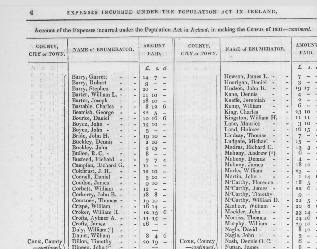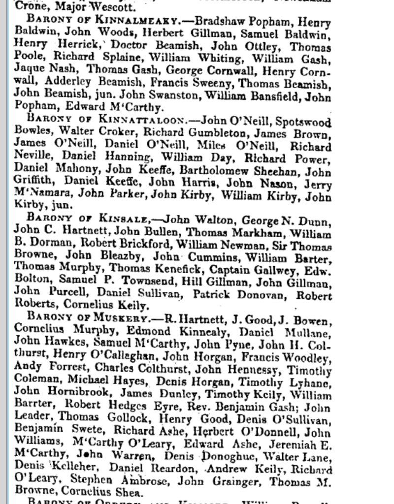 1831 Persons Appointed Fit and Proper Persons to Taking a Census, Barones Bere, Bantry, East Division, East Carbery, East Division, West Carbery, West Division, East Carbey, East Division, West Carbery, Courseys, Ibane and Barryroe, Kilmmeaky (Bandon)
