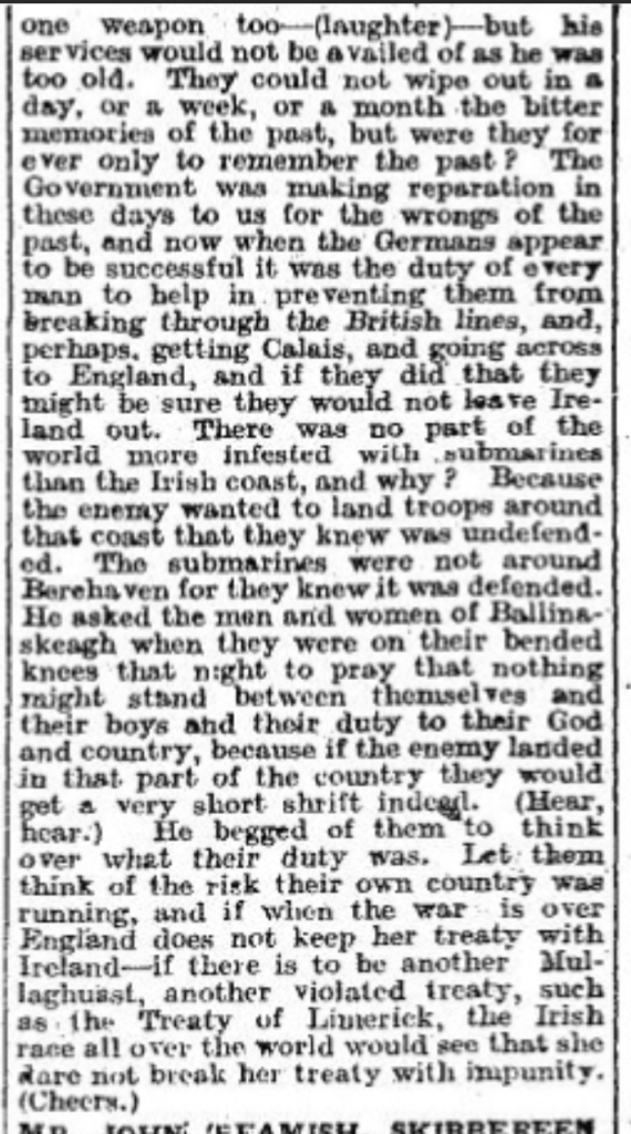 1909 attending the funeral of Dr. William Jennings, J.P. 1914 RDC electin nominated by Parish Priest Fr..Michael O’Callaghan.