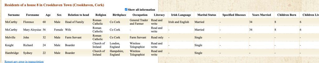 Daniel McCarthy (1868-1934), 1912, Parkview, Cork Road, Skibbereen, listed 1913, Clerk of Poor Law Union, after Clerk Skibbereen UDC, brother of Charles in UDC, Chairman Skibbereen UDC 1917. 1915 fund to aid Polish soldiers WW1.