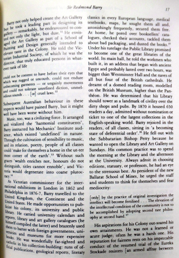 Sir Redmond Barry, Supreme Court Judge, Melbourne, Australia, Judge in Ned Kelly case, Involved in founding University of Melbourne, Art Gallery, Mechanics Institute, Schools of Mines, cultural Societies, Born Ballycough Co. Cork, 1813 died Melbourne 1889.