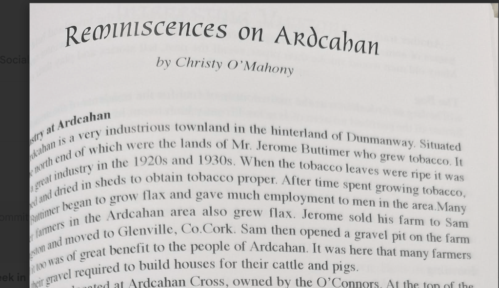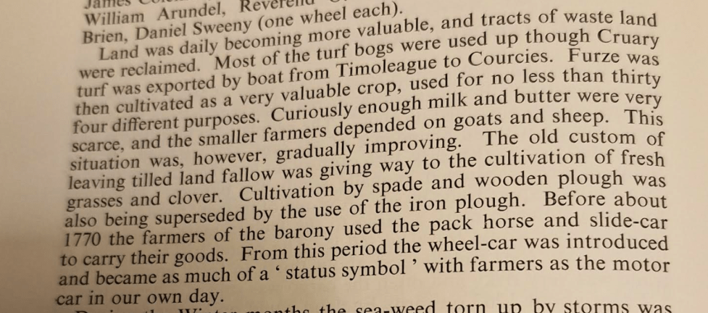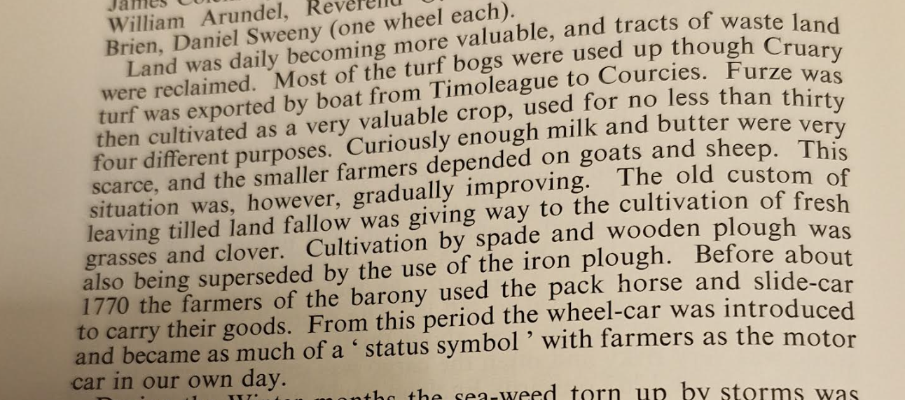 In 1891 Sir John Gorst, Reforming MP, 1891 visited Aughadown and the detailed account in the Southern Star carries description of furze sticks used as fuel: