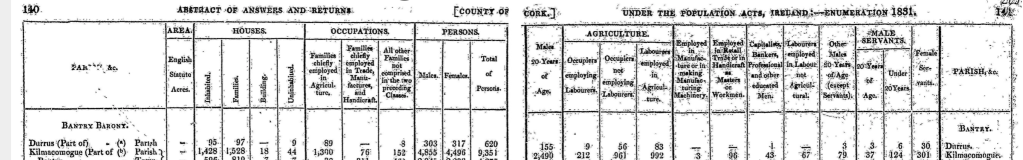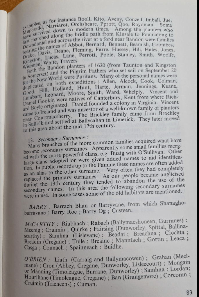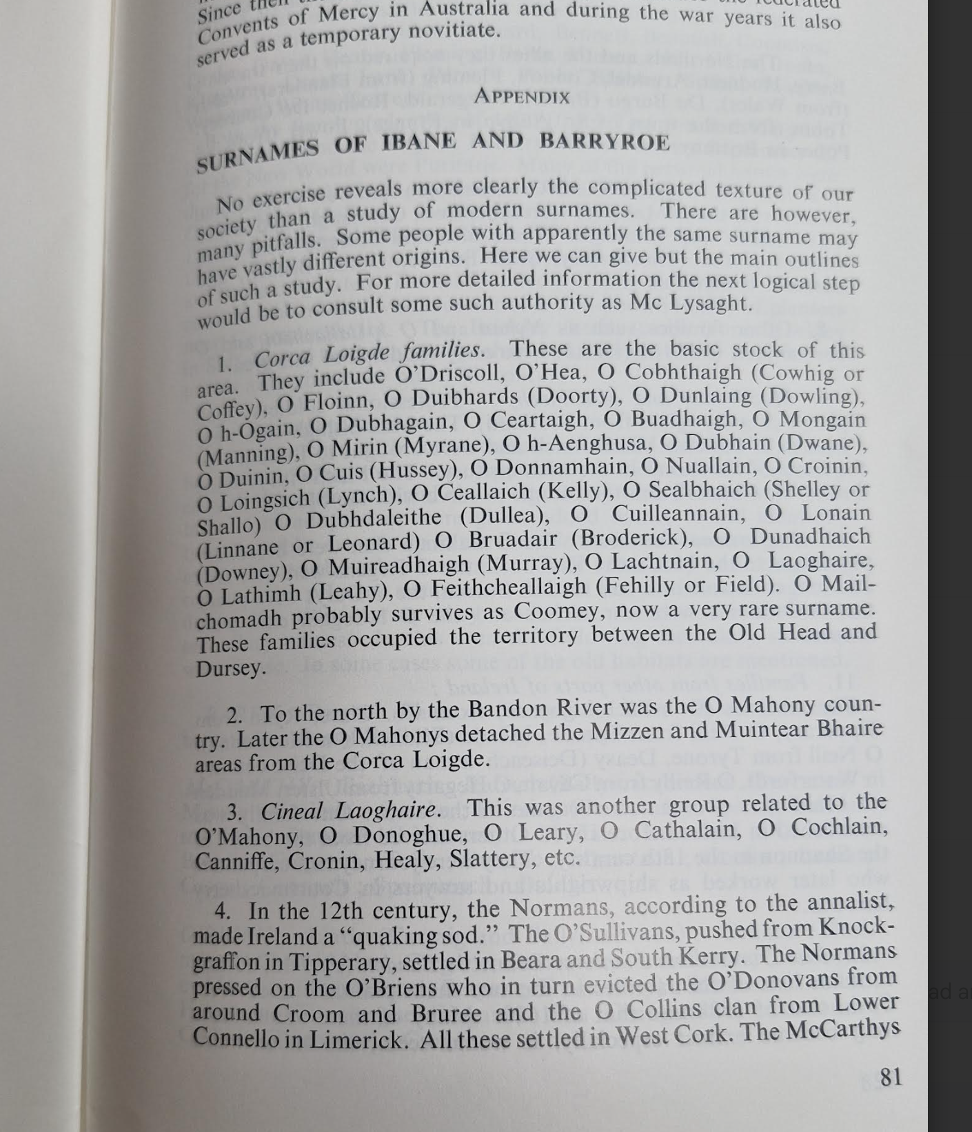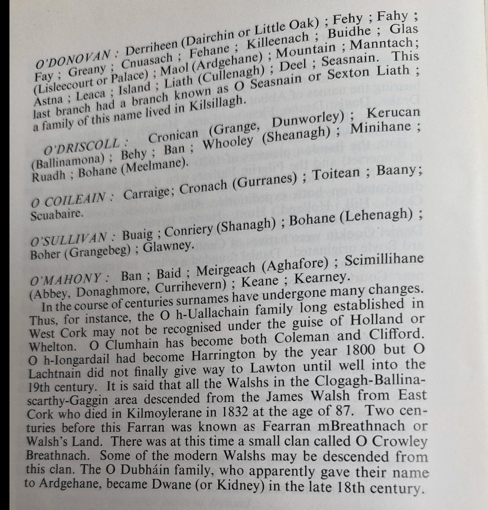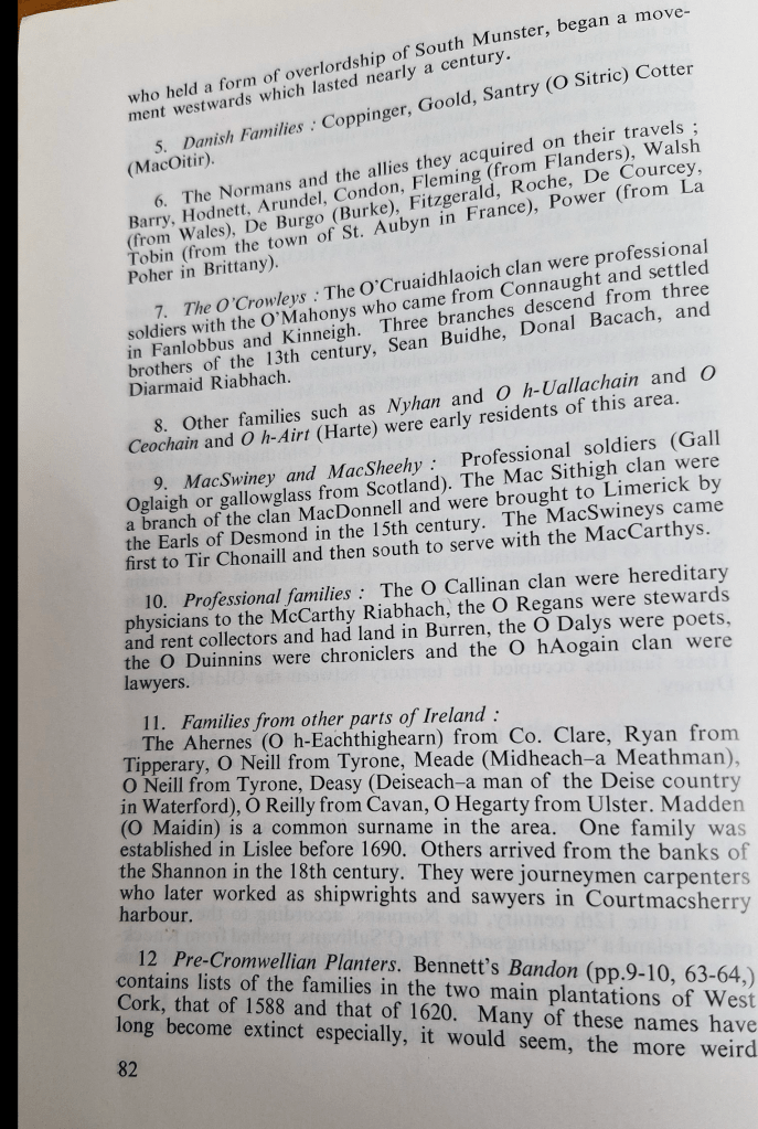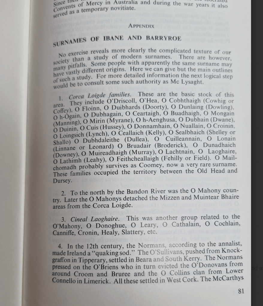 The reference to Cotters as Danish in origin may not apply to those from the Dunmanway/Bantry/Macroom districts. DNA suggested they may be a Sept of either the O’Learys or O’Mahonys.