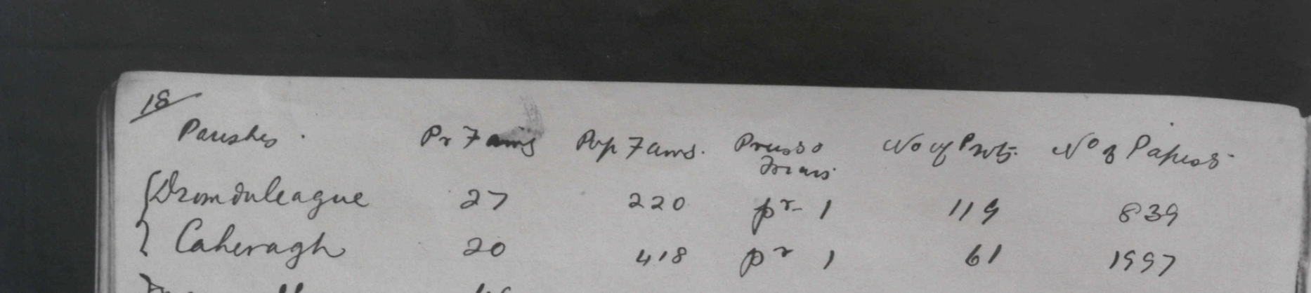 NAI PRIV/M/4921 is a facsimile copy of a volume of Cork material which includes:abstract 1766 religious census material (to parish level) for all parishes in Cork and Ross diocese1764-5 hearth-tax religious census material for some Cork parishes.