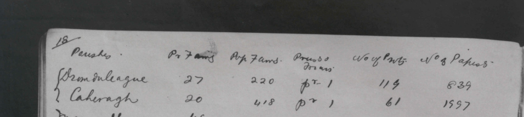 The abstract 1766 population and household numbers in this volume reflect the diocesan summary for Cork and Ross diocese, which was Parliamentary Return number 787 in the Parliamentary Return collection in the Public Record Office.