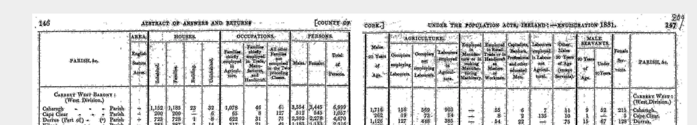 The 5 March 1766 resolution of the House of Lords instructing that a religious census be taken required parish ministers to return lists of the heads of households only. However, the instruction from the Cork and Ross Diocese to its parish ministers to conduct a census must have included a specification that population numbers were also to be returned as nearly all parishes in Cork and Ross provided population data alongside counts of the number of households. Cork and Ross was the only diocese to return both population and household counts as a general rule.