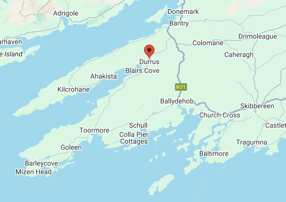The Brooks/Brookes of Dromreagh (Drom Riabhach, stripe, grey ridge), Durrus, West Cork coming early 19th century as Weavers from Ryelands, Raphoe, on the Abercorn Estate in East Donegal, some go to New Zealand early 20th century, and 1926 sale of family holding Dromreagh on move to Courtmacsherry, subject to ‘a trifling annuity’ with an acre and a half of furze meadow.