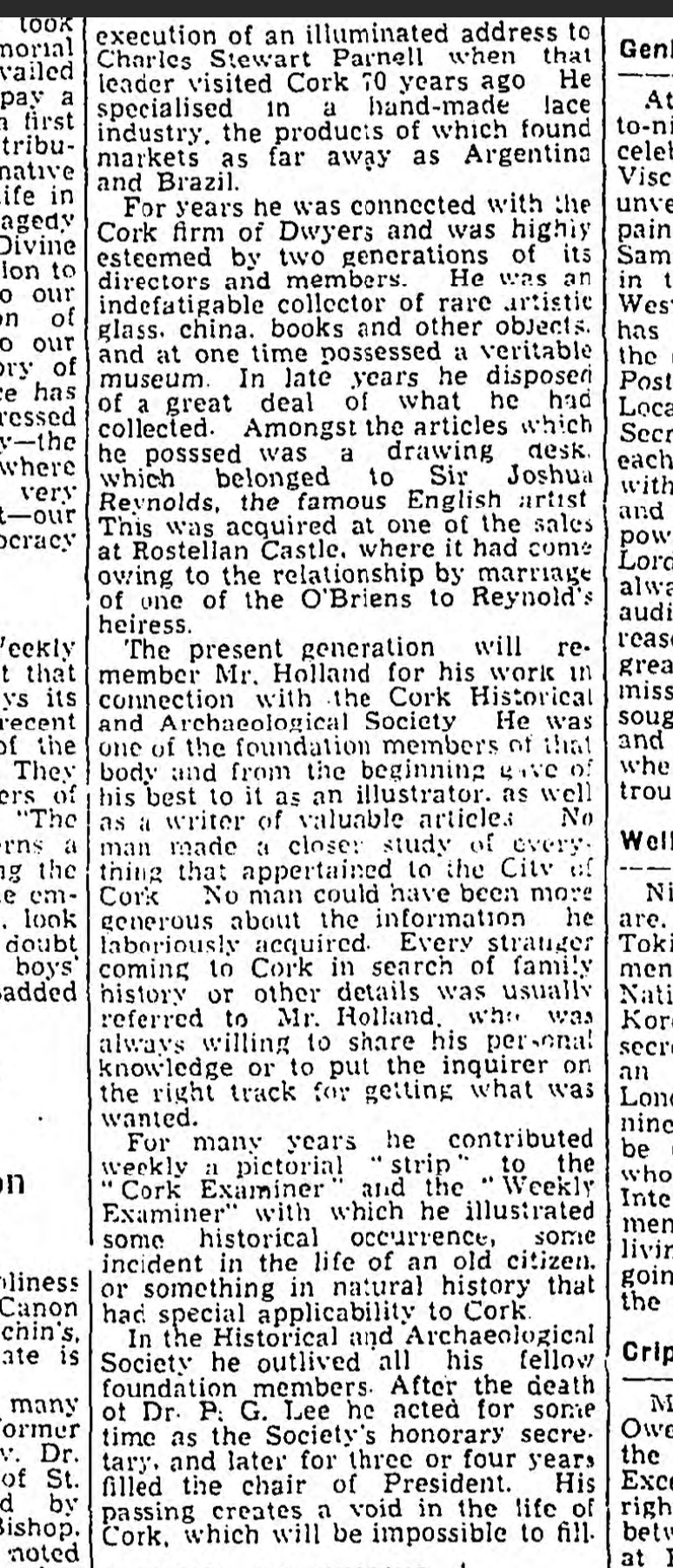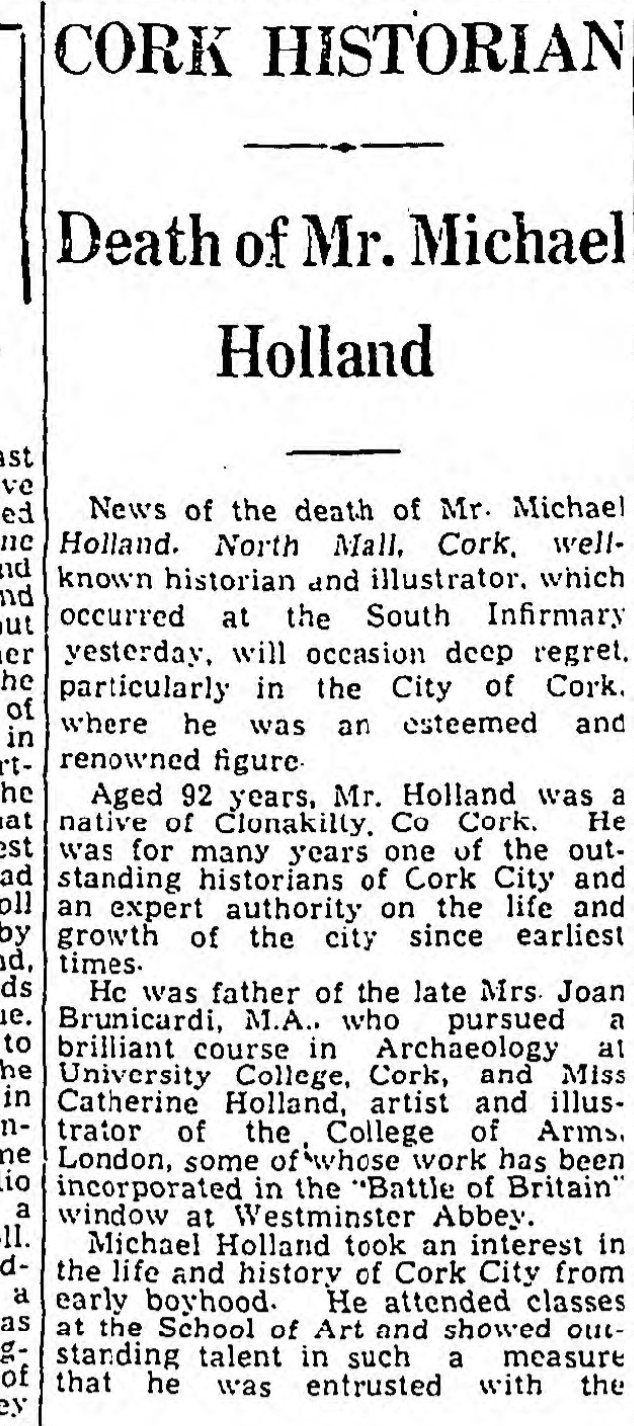 Possibly related to Father Holland, History of West Cork, and if so to late journalist Mary Holland. . He died the same year.