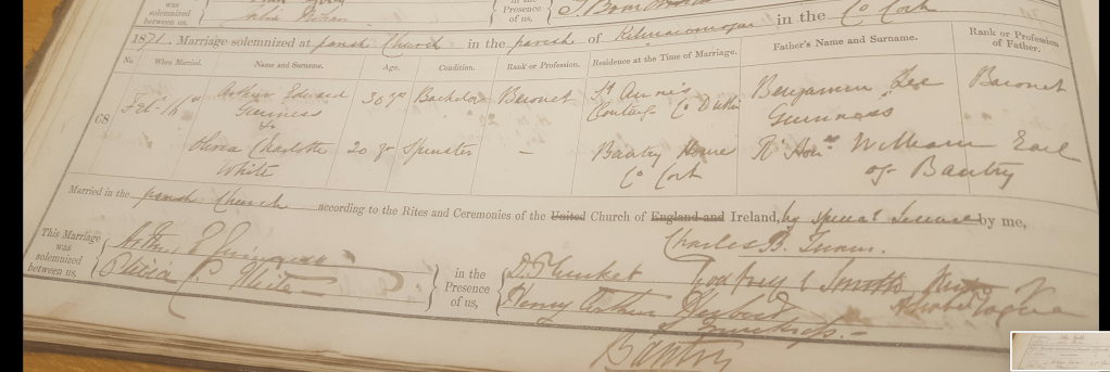 1871 Marriage St. Brendans Church Bantry of Arthur Edward Guinness, Baronet, to Olivia Charlotte White, daughter of The Earl of Bantry