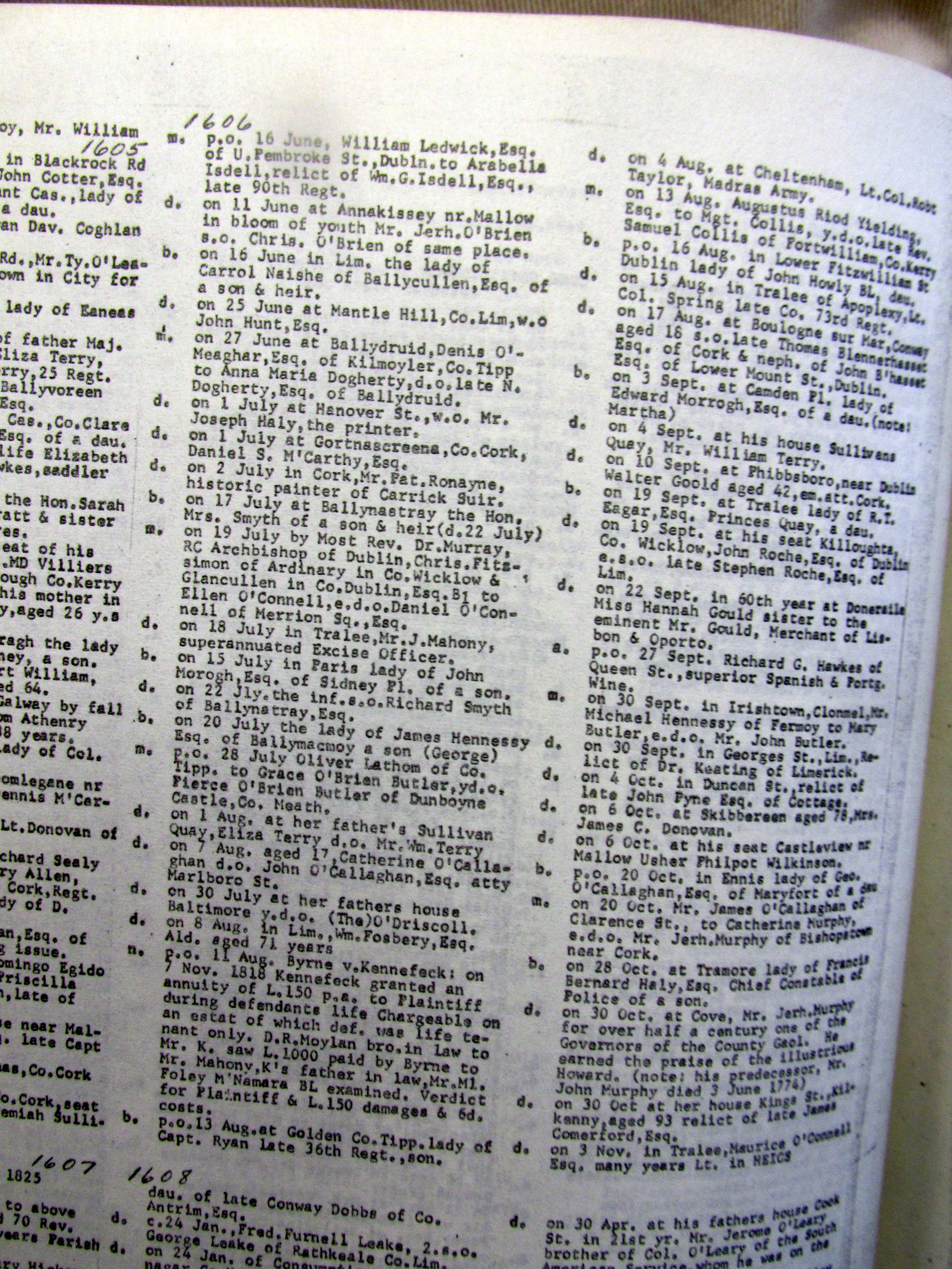 “Died, 24th November 1820, Baltimore, Carolina, USA, Dr. Mathew O’Driscoll. of Creagh and Baltimore USA, 64, son of the late ‘The’ O’Driscoll, Creagh brother of Michael O’Driscoll Esq., and Died on the 7th May 1823, at Baltimore House, West Cork, of a Decline induced by too Severe Studies of Medicine which he had completed with great Distinction at Edinburgh Denis O’Driscoll Esq. aged 21, only son of ‘The’ O’Driscoll., Esq., of Baltimore and death of youngest daughter of ‘The O’Driscoll’ July 1826 from The Southern Reporter.