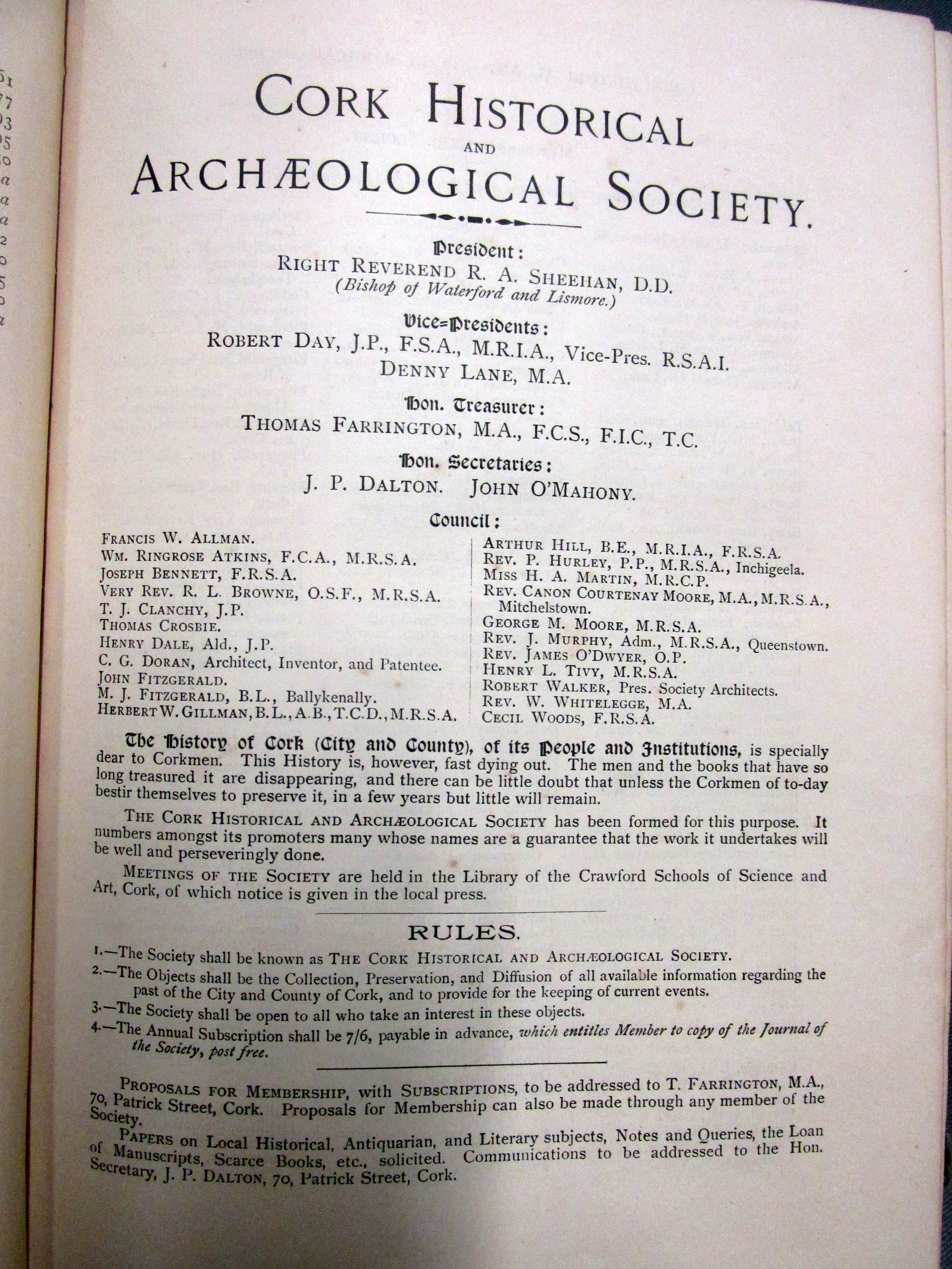 Cork Historical and Archaeological Society, Francis Joseph Bigger, Gaelicisation of Irish Public Service, Herbert Gillman Cork Historian, Irish Music Collector, William Baylor Heartland Cork Horticulturist